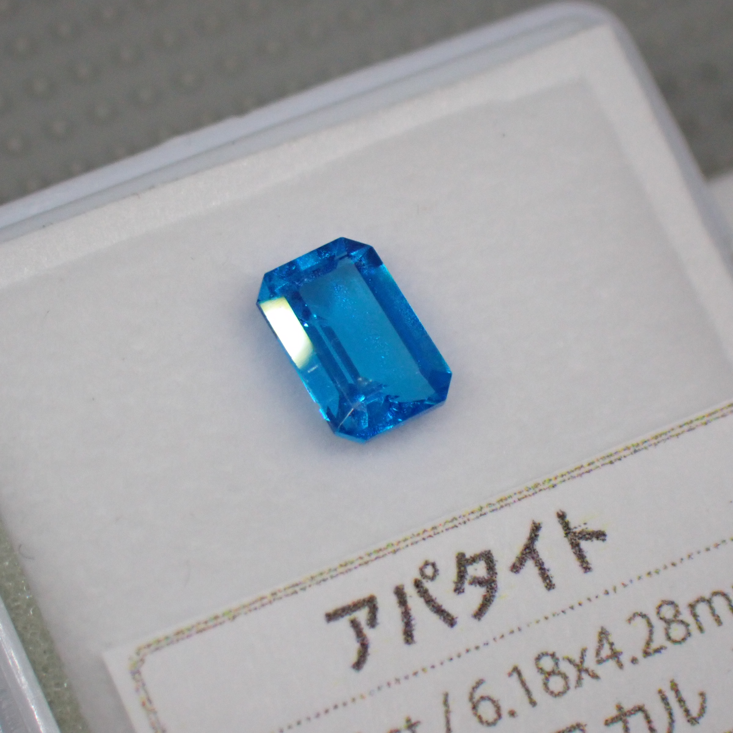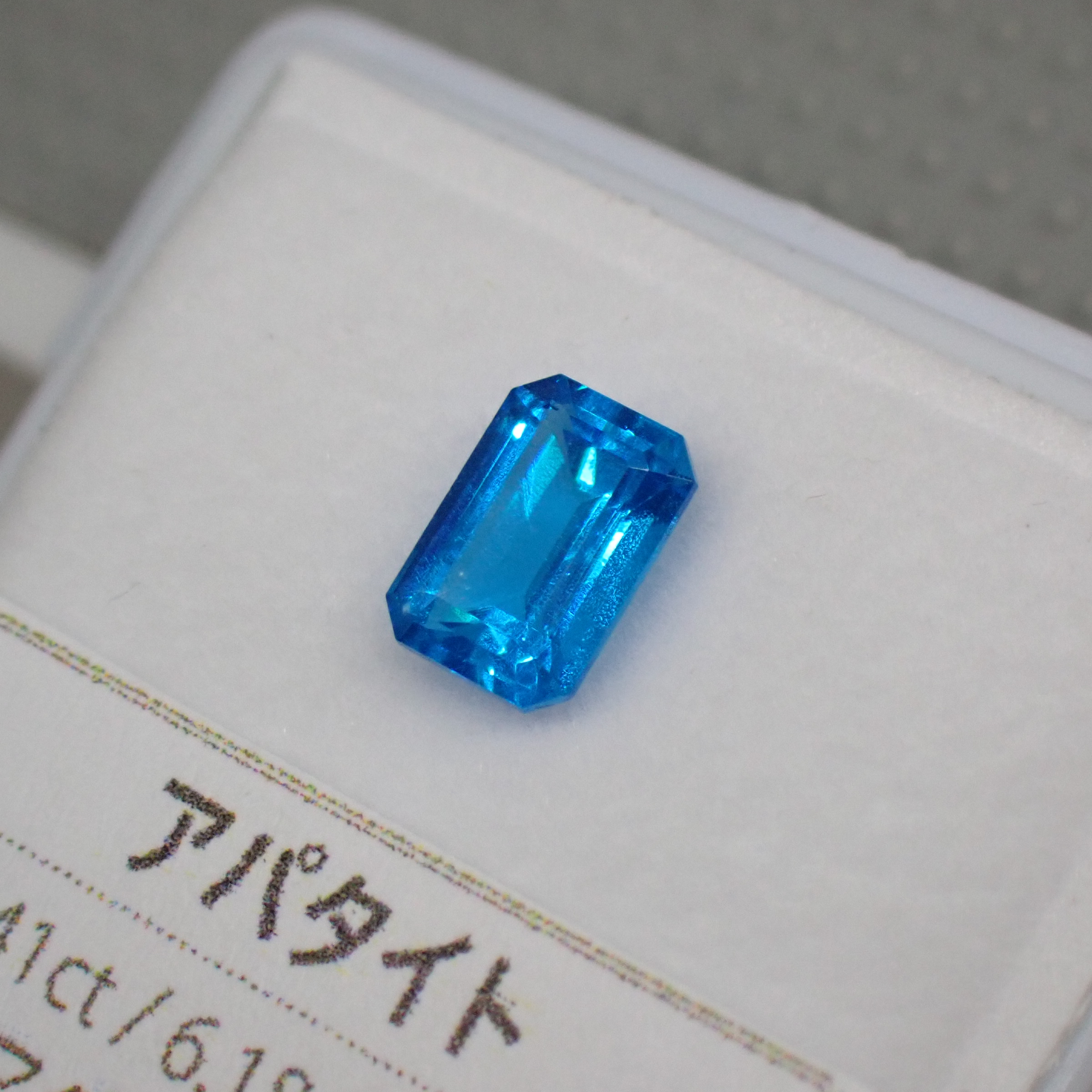 ネオンブルーの輝きがひときわ美しい、アパタイトのルースです。
