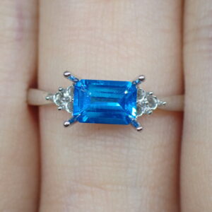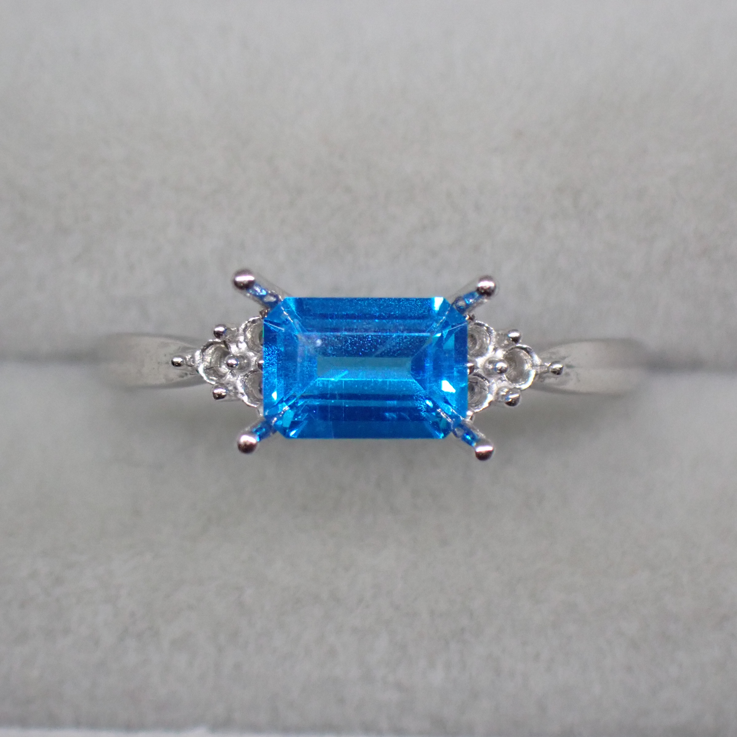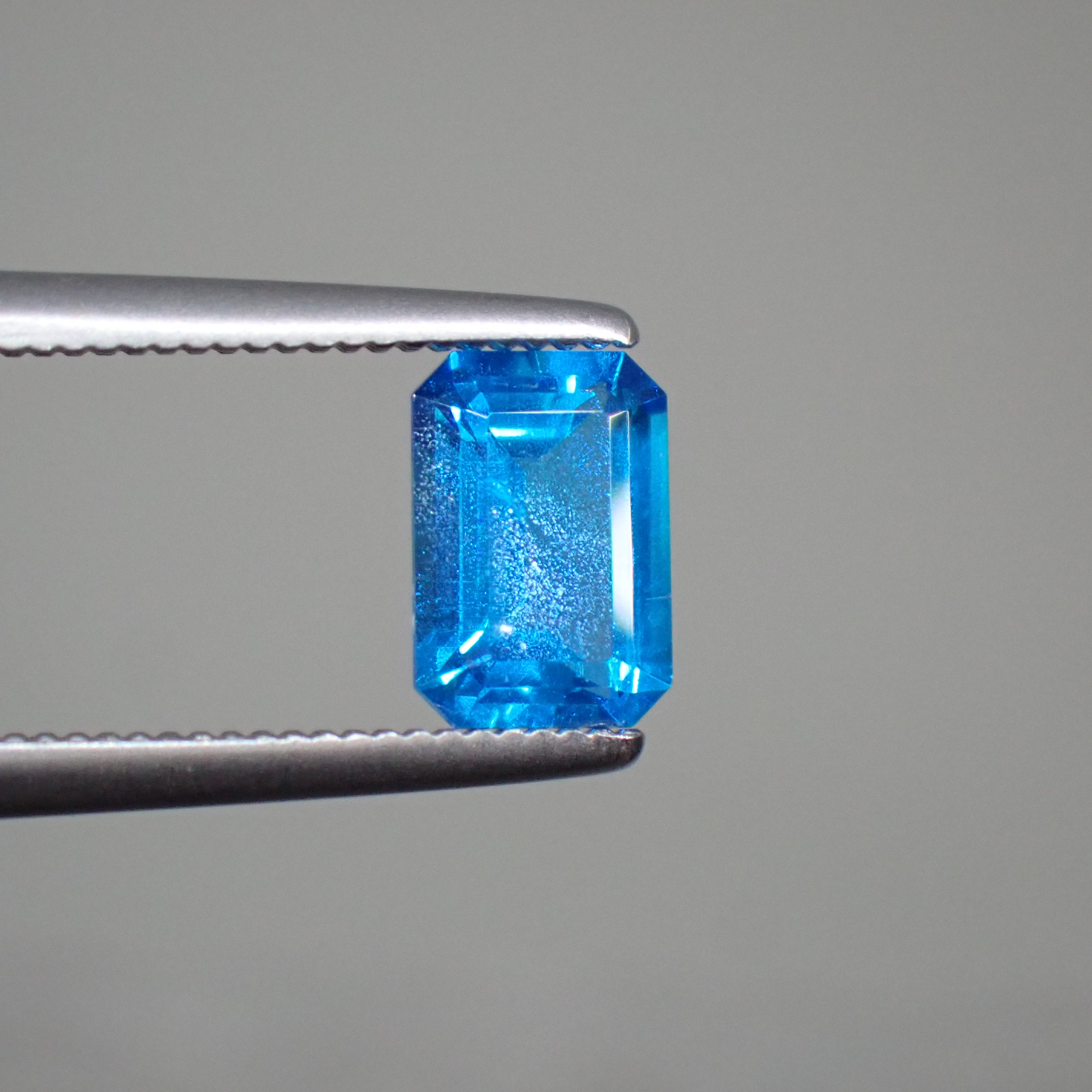 さわやかでネオン感のあるブルーは本当に美しく、強い輝きだけでなく、光の中できらめくようなインクルージョンの表情まで楽しめます。10倍ルーペで覗くと、まるで海の中の泡のような内包物が現れ、角度によって浮かんでは消える幻想的な姿に思わず見入ってしまうほど。中抜けもほとんどなく、しっかりとした煌めきを放ちます。
