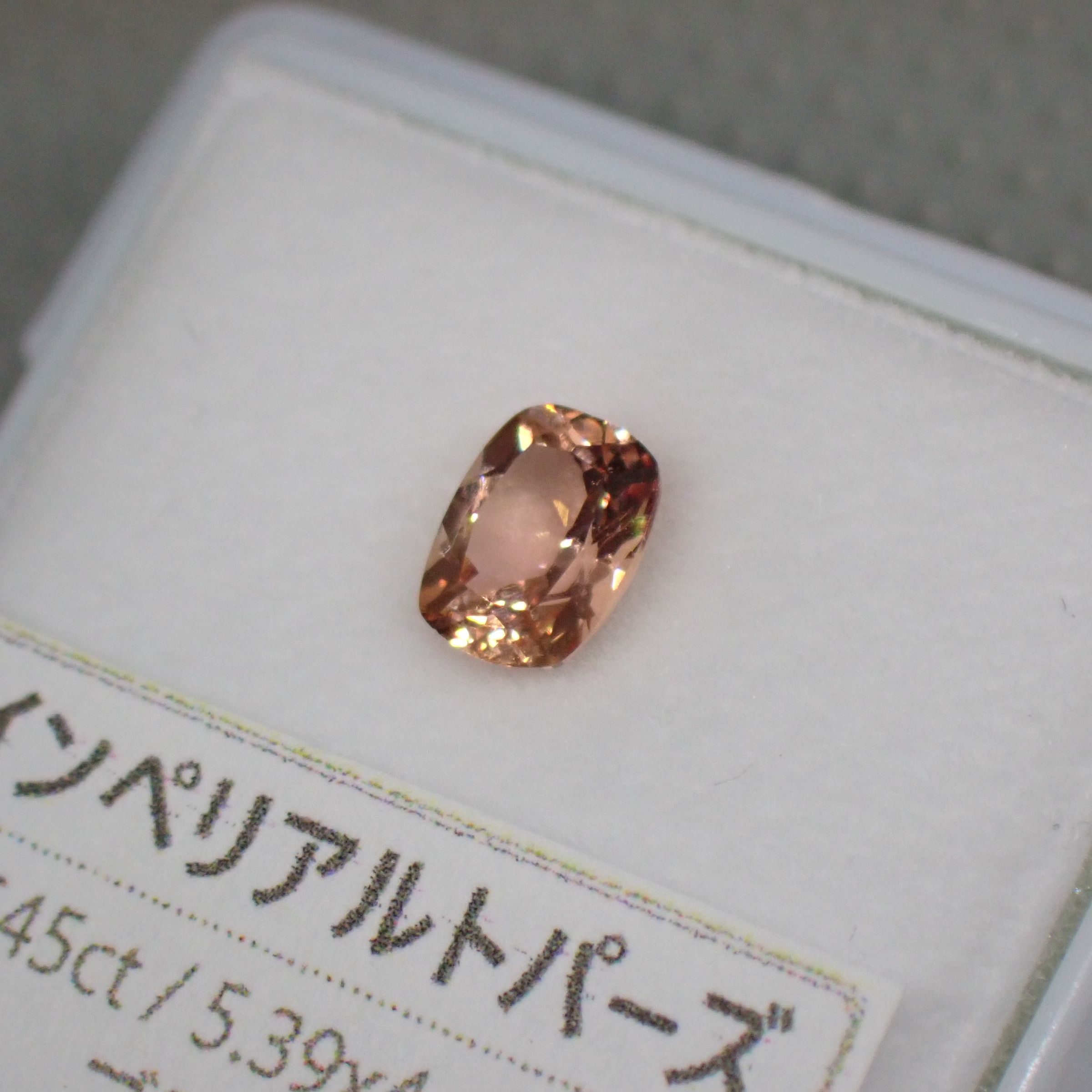 こちらのインペリアルトパーズもレッドとピンクとオレンジが混ざったような色で、角度によっては赤味も強く感じられる高品質な色です。