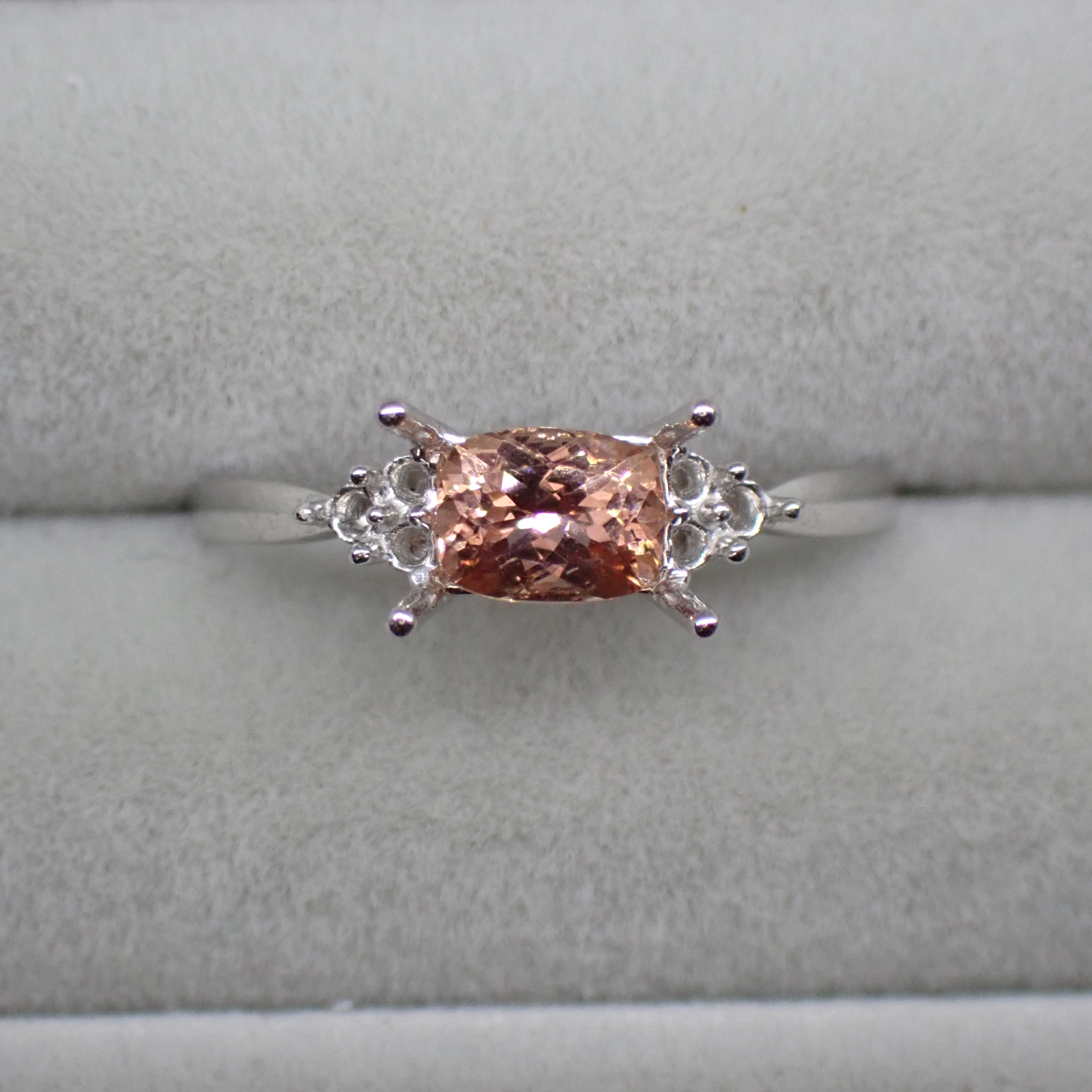 トパーズには大きく分けて「Fタイプ」と「OHタイプ」の2種類があり、なかでも希少なOHタイプがインペリアルトパーズと呼ばれます。黄色からレッドまで幅広い色のバリエーションがありますが、特に人気が高いのが、赤みを含んだオレンジピンクの「シェリーカラー」。こちらのルースも、オレンジ・ピンク・レッドが複雑に溶け合い、角度によって印象が変わる高品質なカラーです。