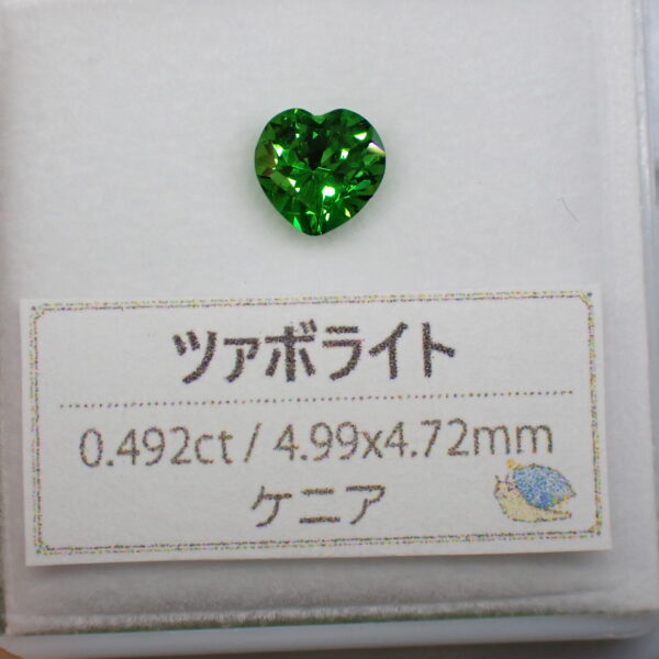 強烈なネオンの煌めき☆丸みを帯びたハートカット ツァボライト 0.492ct