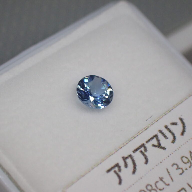 一般的な淡い印象のアクアマリンと比較しても濃いめのブルー。