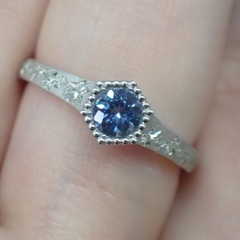 画像は『天の川リング』に乗せて撮影しています。ルースの美しさは実際に身に着けたときにこそ際立ちます。