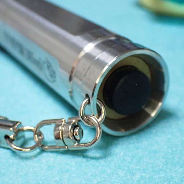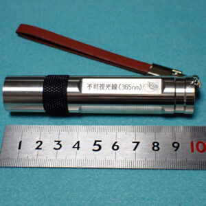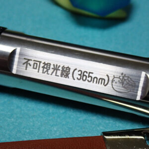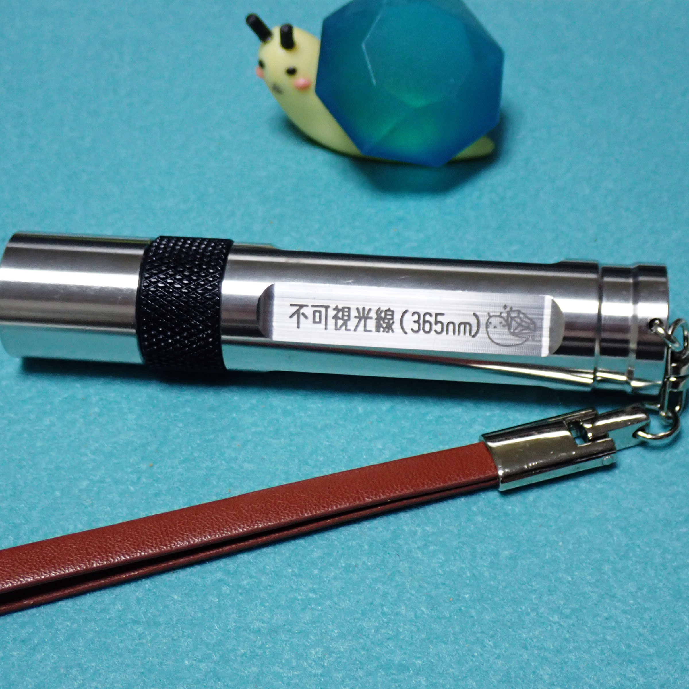 上のボタンを押すと、ライトがON/OFFします。黒いフィルターが付いているので、蛍光反応の色が見やすいです。