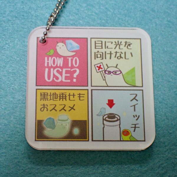 全体サイズは約10cm。キーホルダーに簡単な説明が記載されていますので、初めての人にも安心。