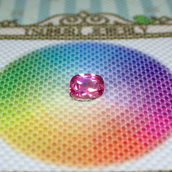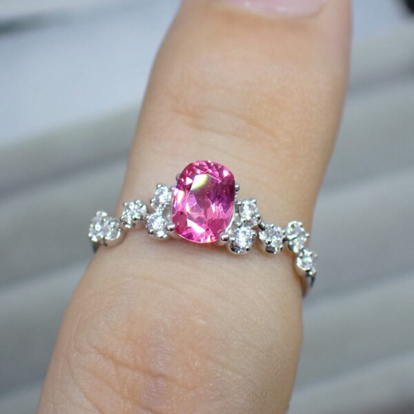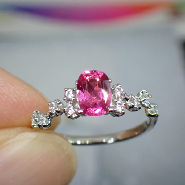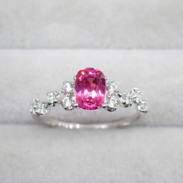 盤面が広く光を受けるたびに強い輝きが楽しめる華やかなピンクスピネル。