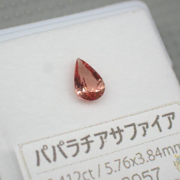【中宝鑑別書付(通常加熱)】輝き◎赤みも感じるパパラチアサファイア 0.412ct