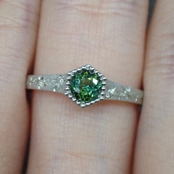 ジュエリーに仕立てても、ブルーとグリーンの溶け合う美しさはそのままですので、安心してジュエリー加工できます。