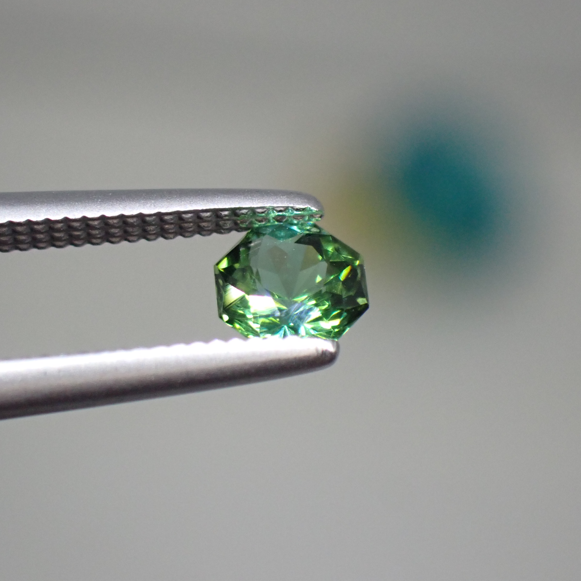 原石からカットしたアフガニスタン産の高品質トルマリン。濃くて深みのある混ざり合うブルーとイエローイッシュグリーンは、