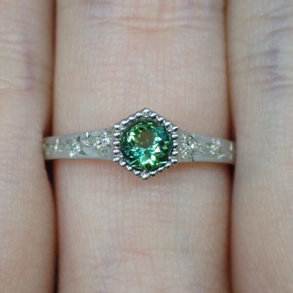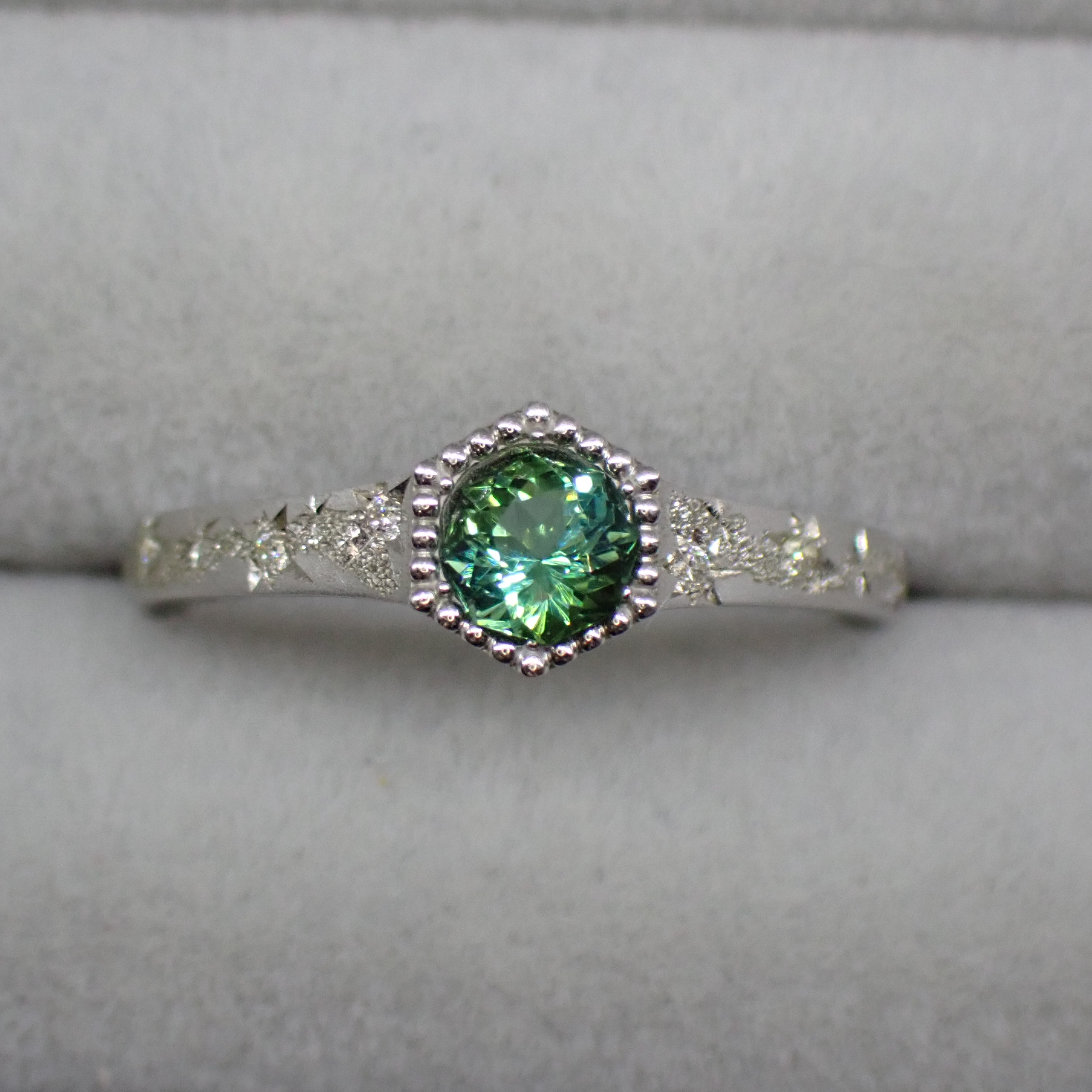 ジュエリーに仕立てても、ブルーとグリーンの溶け合う美しさはそのままですので、安心して加工もできます。