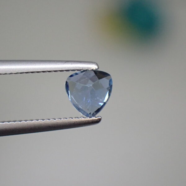 二色鏡で観察すると、深いブルーと澄んだブルーのコントラストが明瞭に確認できる、魅力的な多色性を持っています。