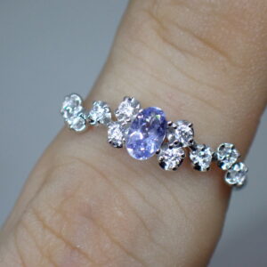ほんのりと青を含んだ紫の光が繊細にきらめき、角度によって表情を変える神秘的な美しさを楽しめます。