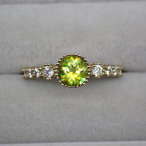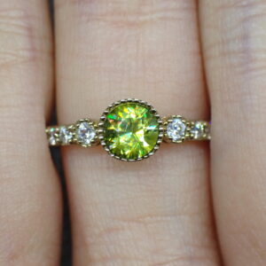 このスフェーンは、動かすたびに鮮烈なファイアがギラギラと煌めく1石。