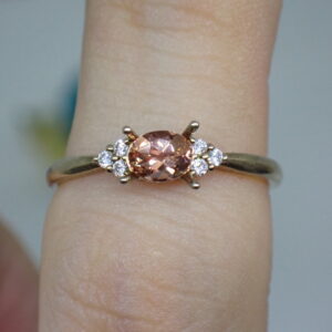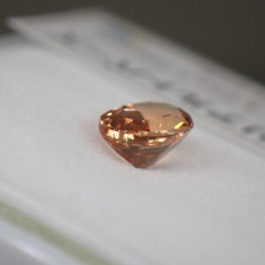 黄色から赤まで幅広い色相を持ちますが、人気が高いのは赤みを含むピンクとオレンジが混ざる「シェリーカラー」。こちらのルースもオレンジ・ピンク・レッドが複雑に溶け合い、角度によって印象がふわりと変わる高品質な色彩が魅力です。