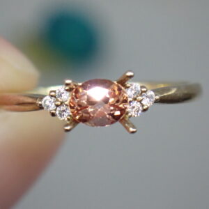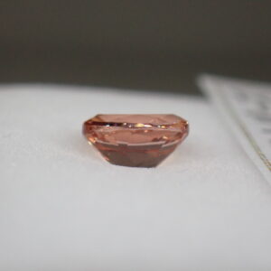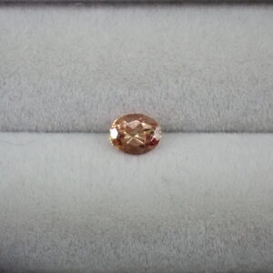 黄色から赤まで幅広い色相を持ちますが、人気が高いのは赤みを含むピンクとオレンジが混ざる「シェリーカラー」。こちらのルースもオレンジ・ピンク・レッドが複雑に溶け合い、角度によって印象がふわりと変わる高品質な色彩が魅力です。