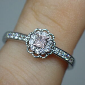可憐な色味ながら、カラーレスダイヤモンドと並べるとピンクがきちんと際立つのも魅力。