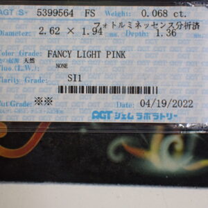 Fancy Light Pink TypeⅡ-A(フォトルミネッセンス分析済) 0.068ct