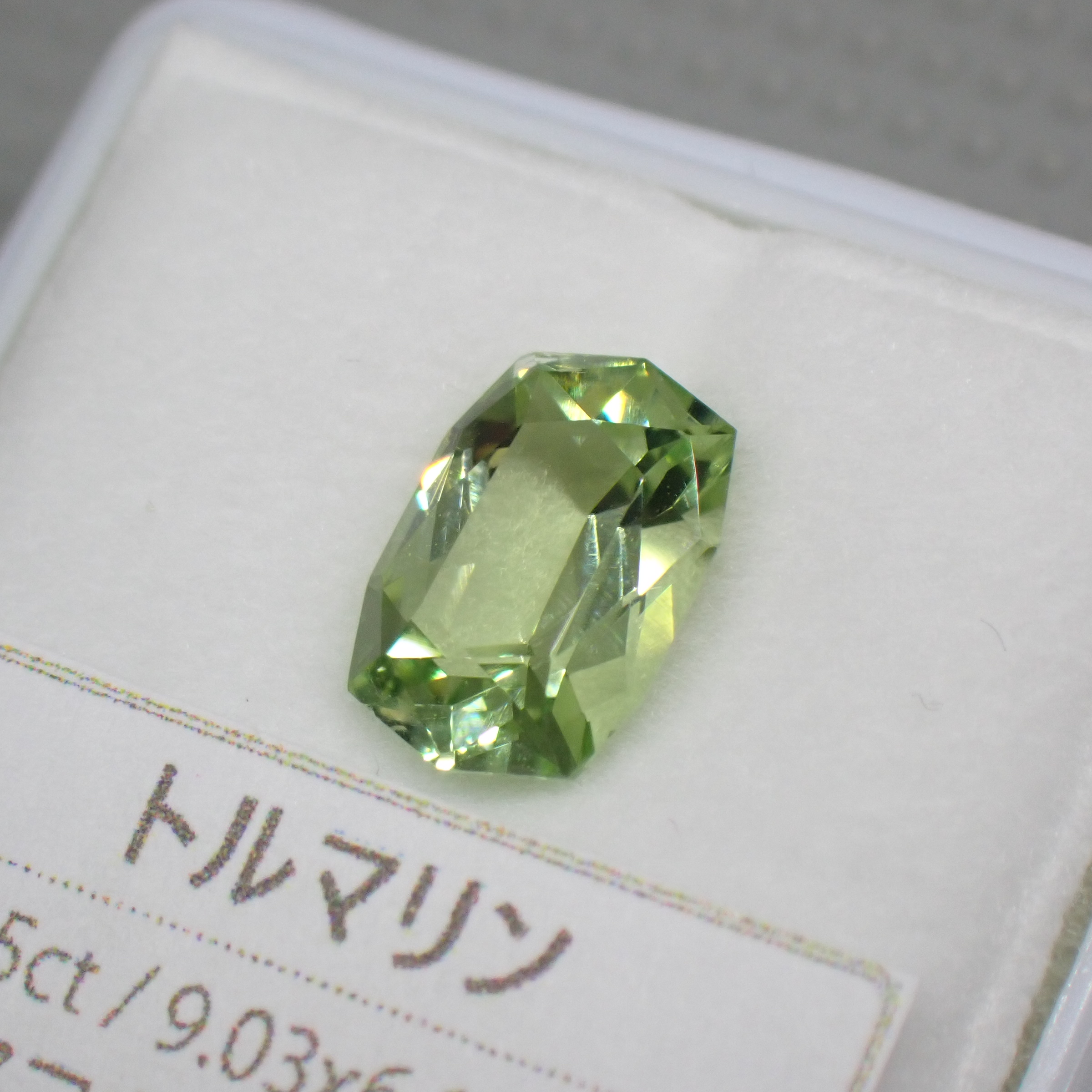 透明度の高いグリーンの中に、やわらかなイエローとブルーを感じる輝きの強い美しいトルマリン。