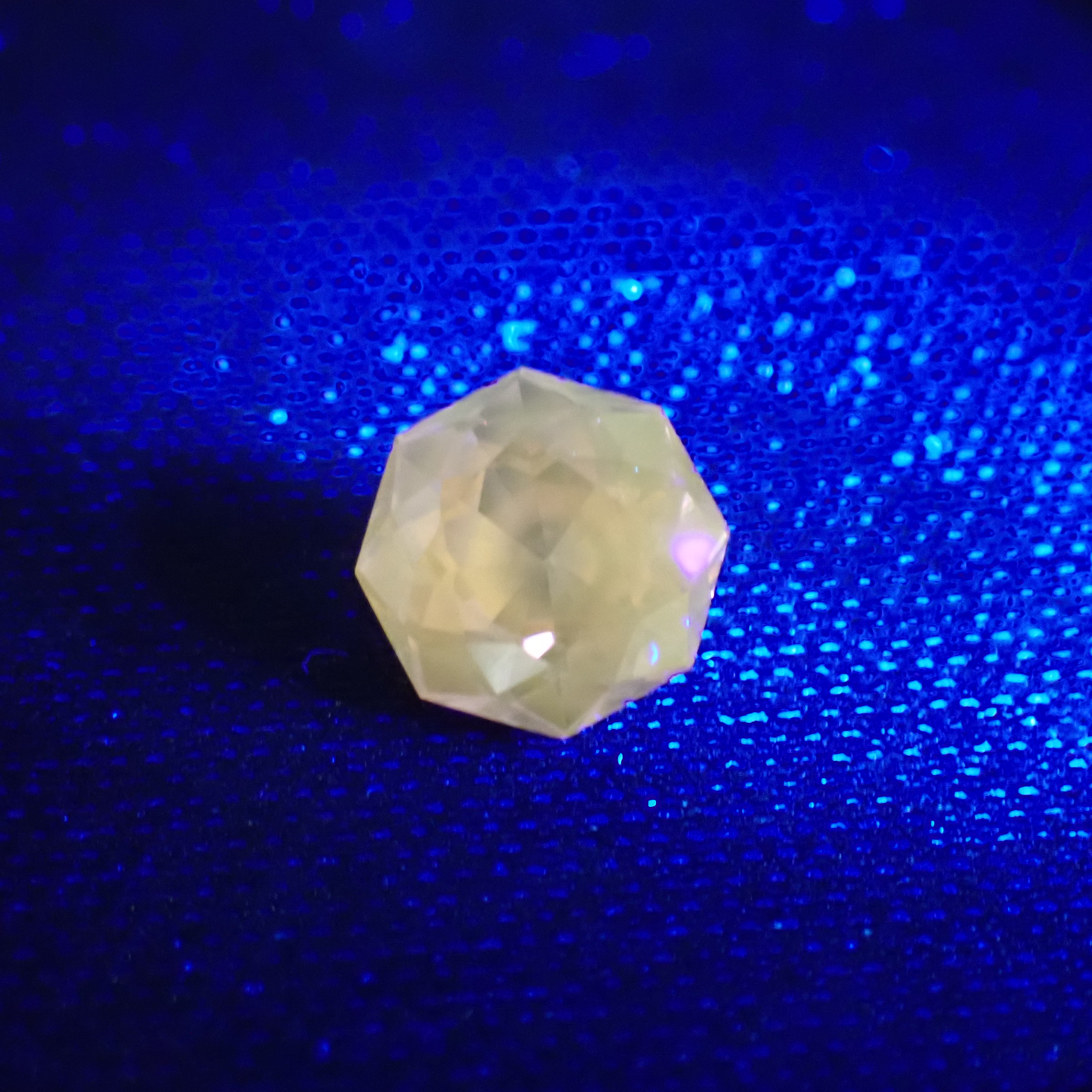 お部屋の明かりでもギラギラと輝きます。10倍ルーペで確認しても目立つインクルージョンが確認困難なクリーンなルース。