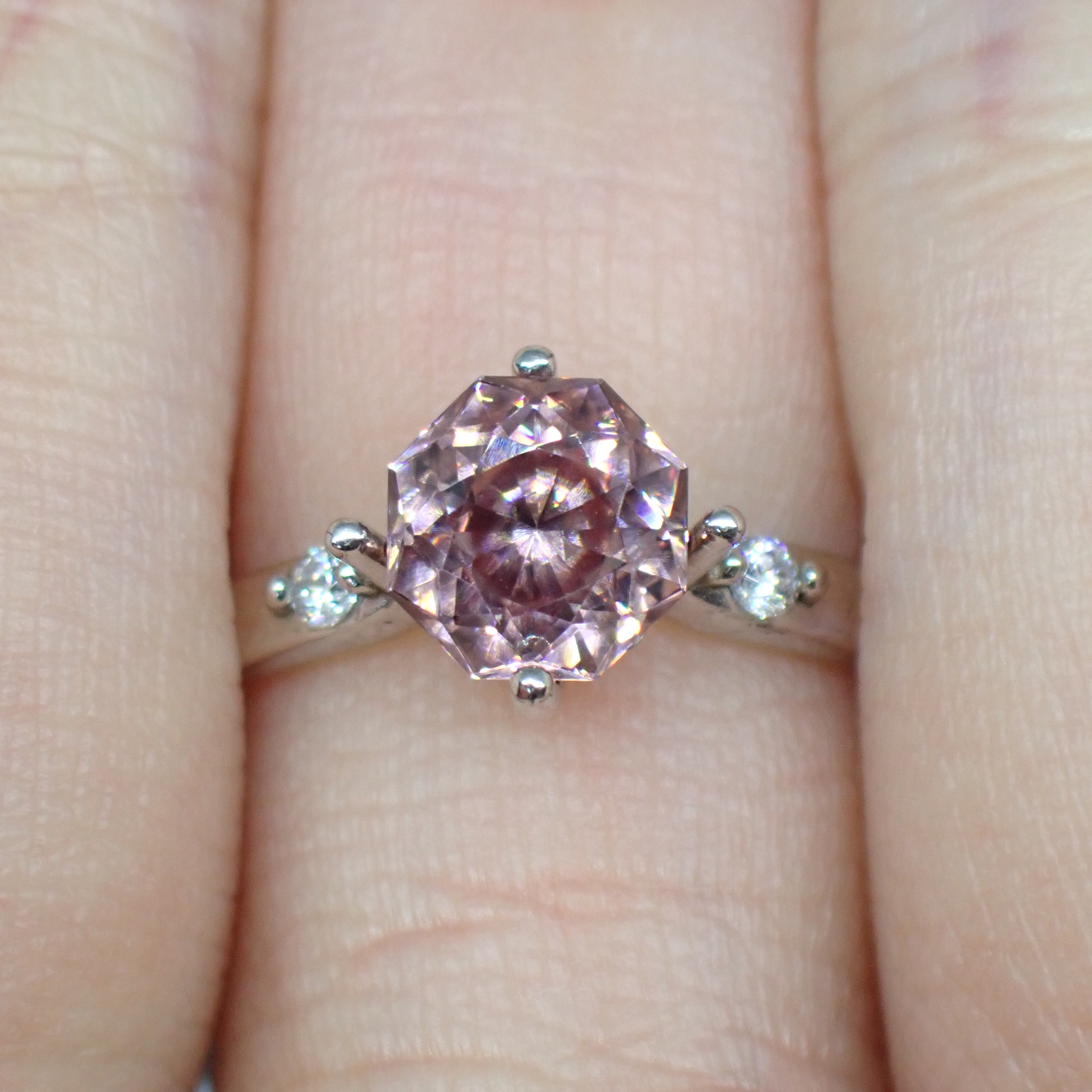 なんとも言えないニュアンスが美しい、落ち着きピンクのジルコン。