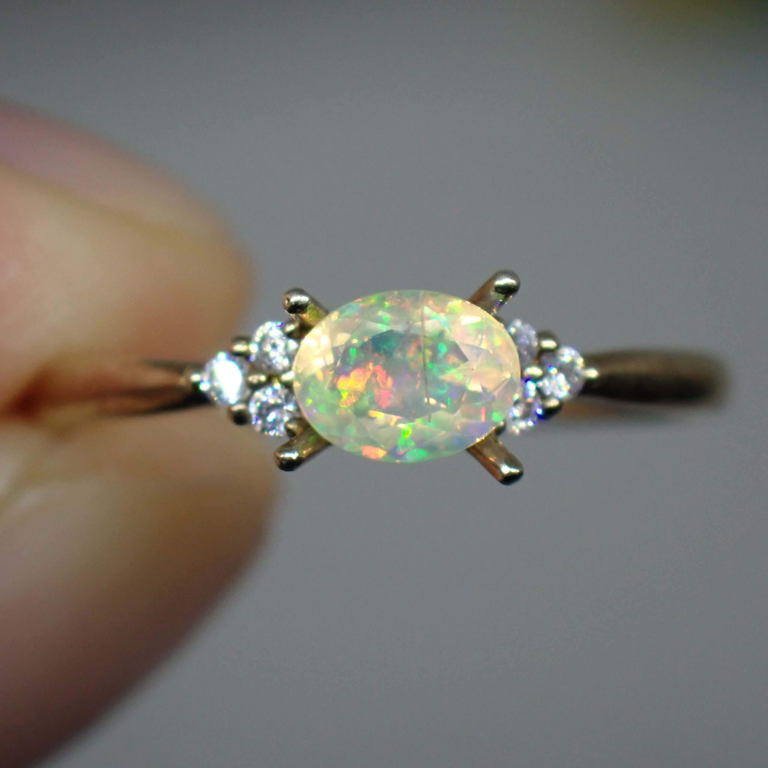 メキシコ産オパールの魅力がぎゅっと詰まった、ぷるんと可愛らしいオーバルカット。