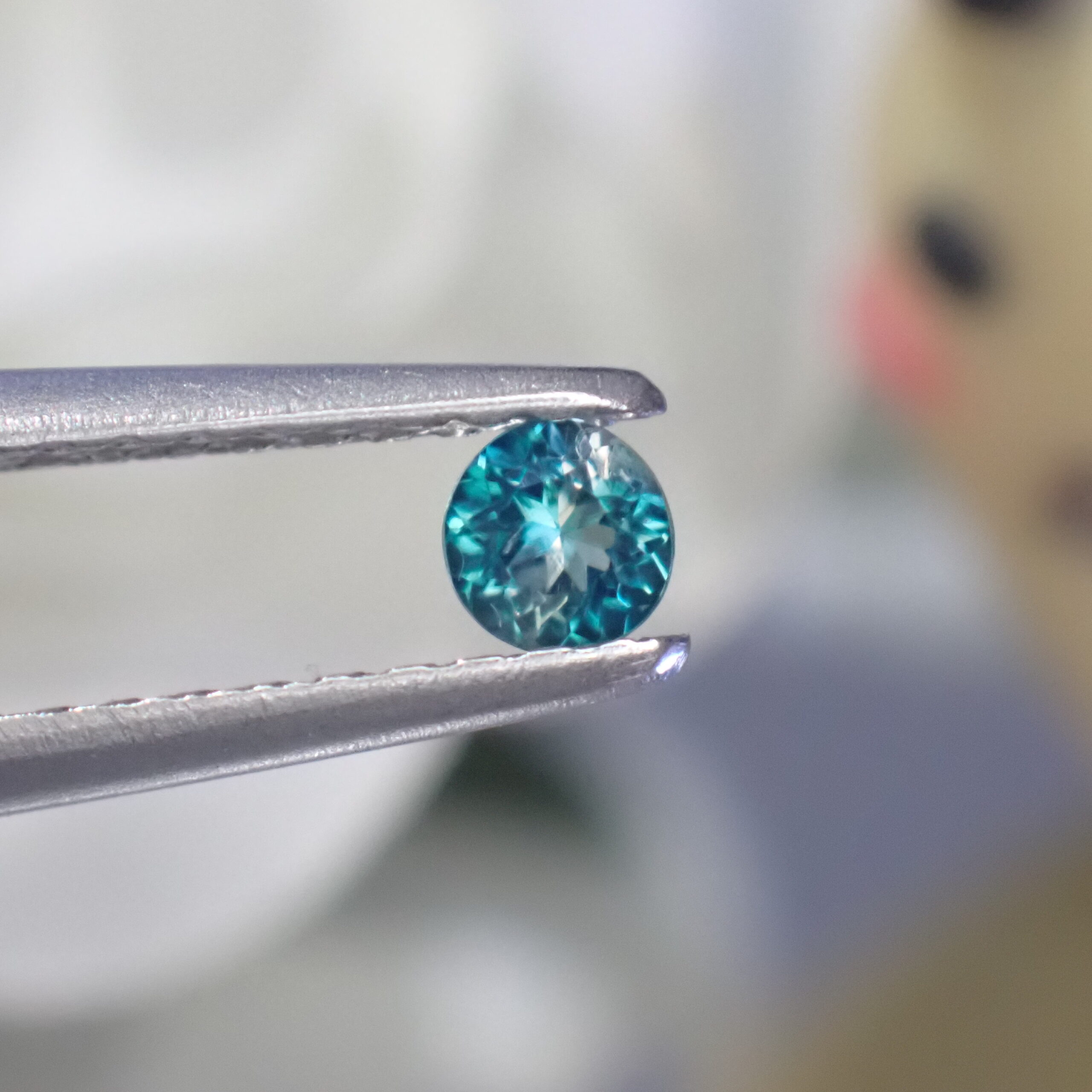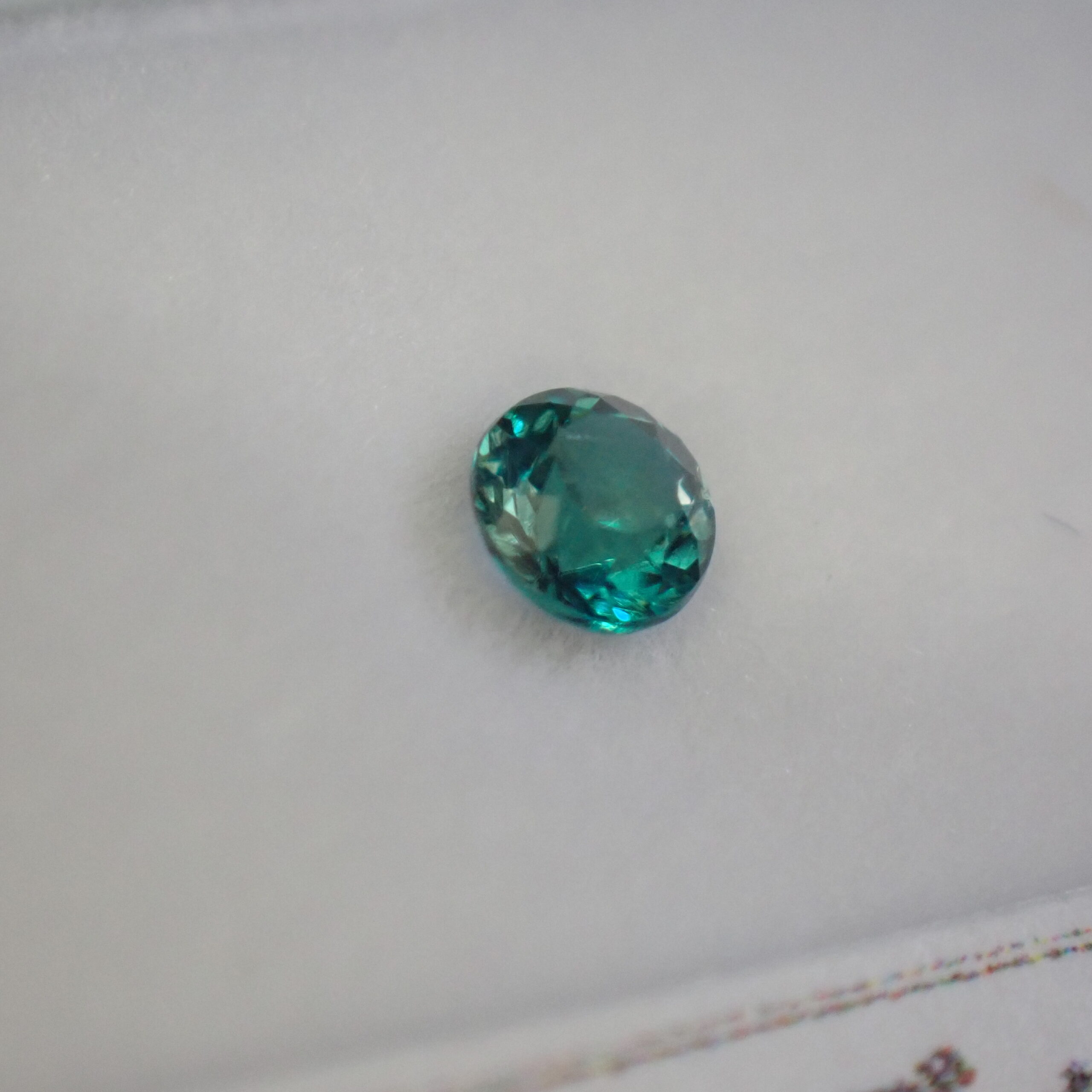 マダガスカル産聞いています。光が当たるたびに鮮やかなグリニッシュブルーがきらめき、奥行きのある輝きを存分に楽しめるルースです。