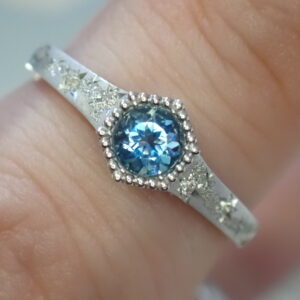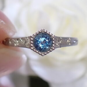 一般的な淡い印象のアクアマリンと比較しても濃いめのブルー。