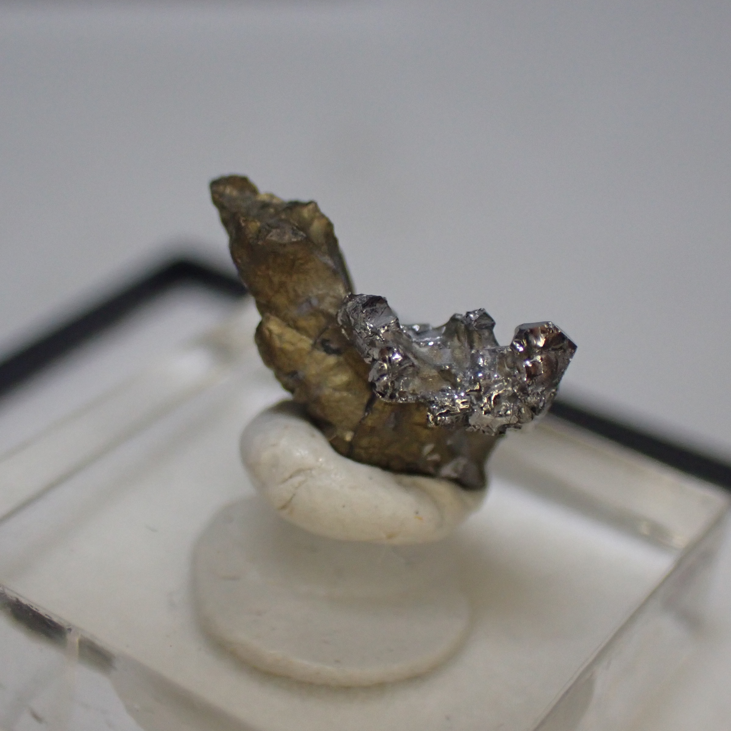 鳥のような形のロシア産スぺリーライト(Sperrylite・砒白金鉱・スペリー鉱)の鉱物標本です。