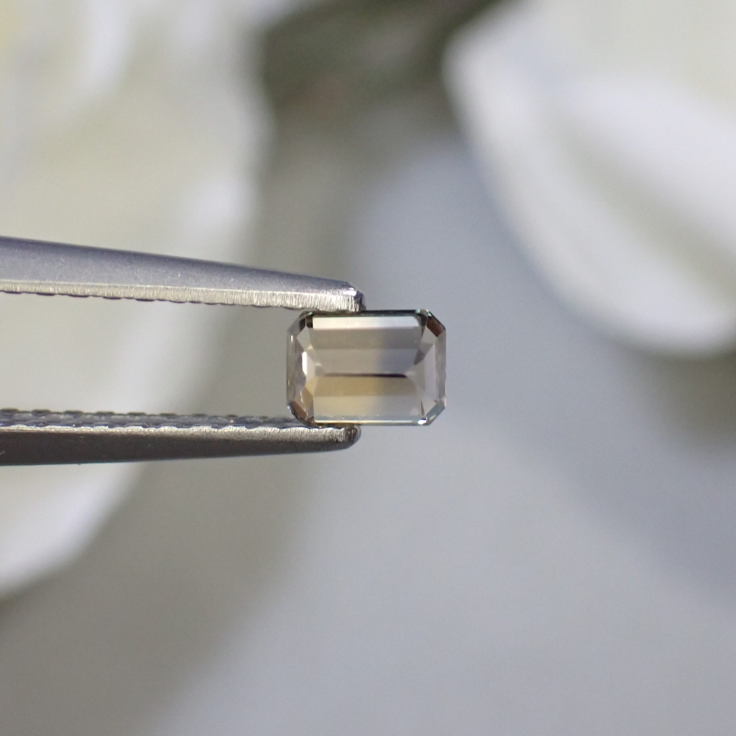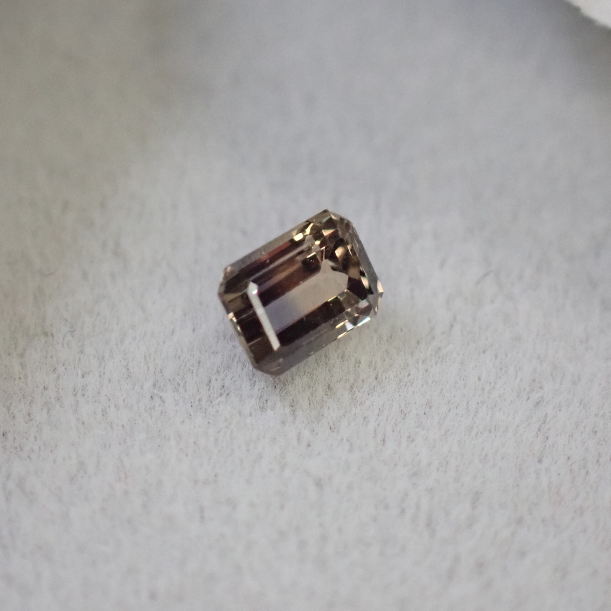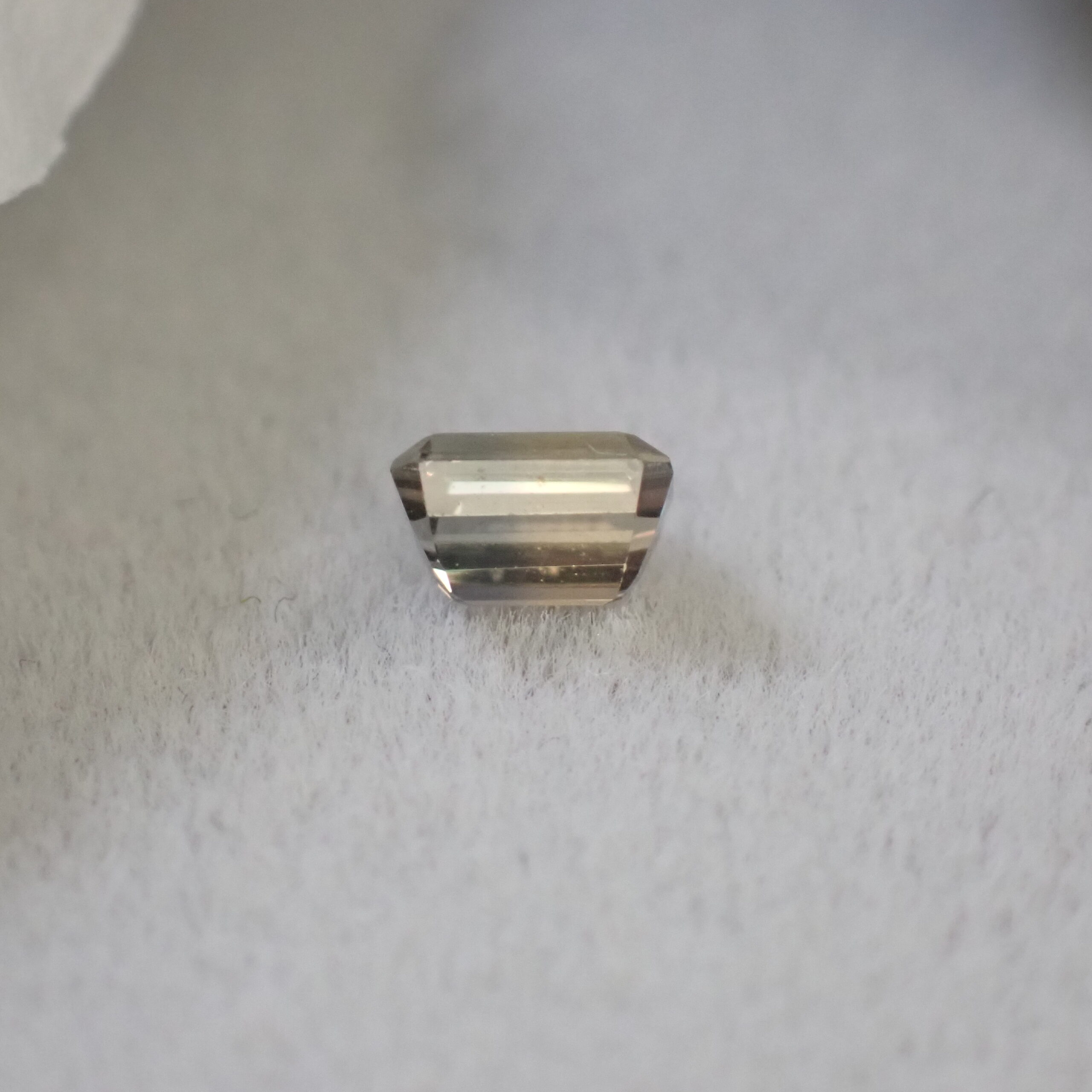 10倍ルーペで確認すると、テーブル面に現れては消えるシルクのようなインクルージョンが見られますが、肉眼では確認困難です。