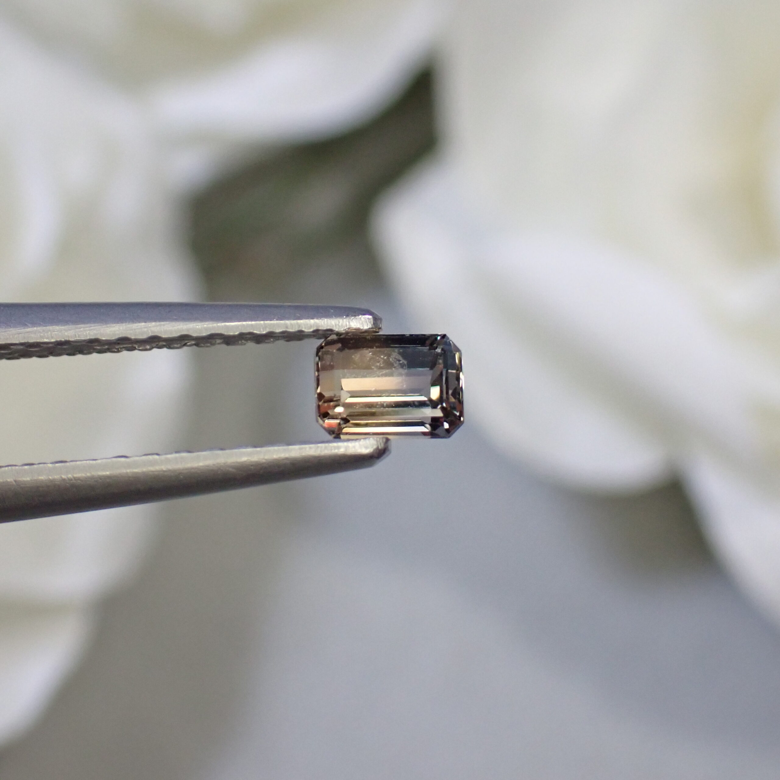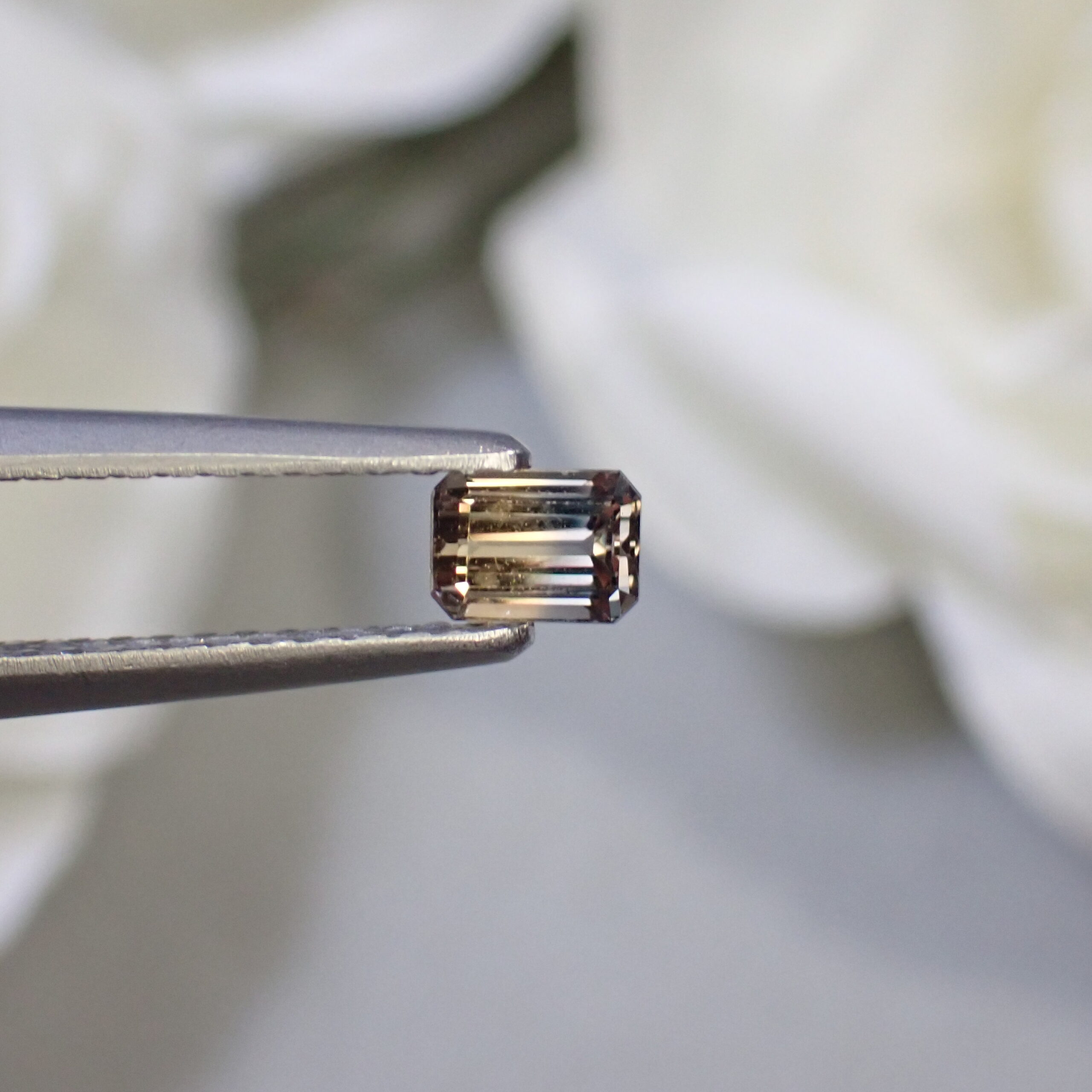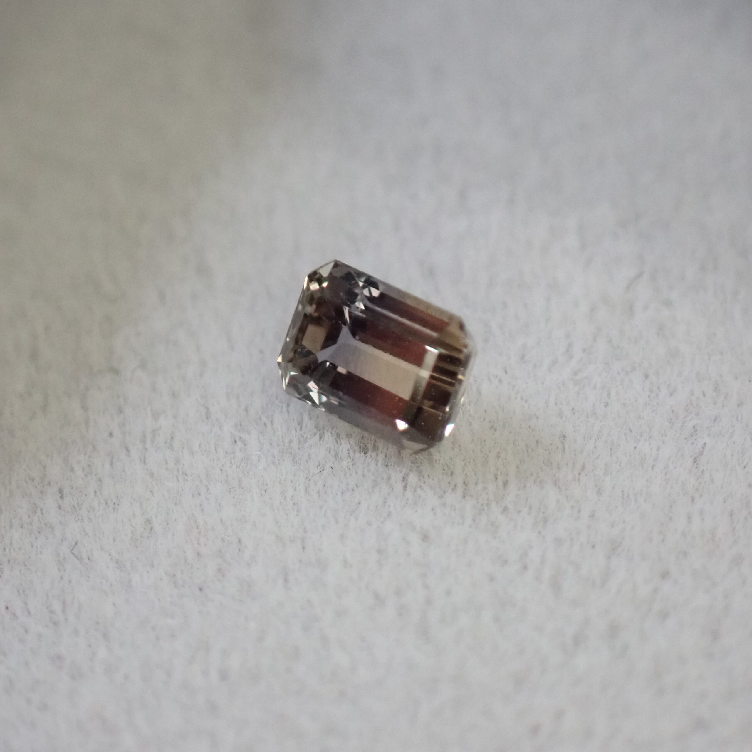 10倍ルーペで確認すると、テーブル面に現れては消えるシルクのようなインクルージョンが見られますが、肉眼では確認困難です。