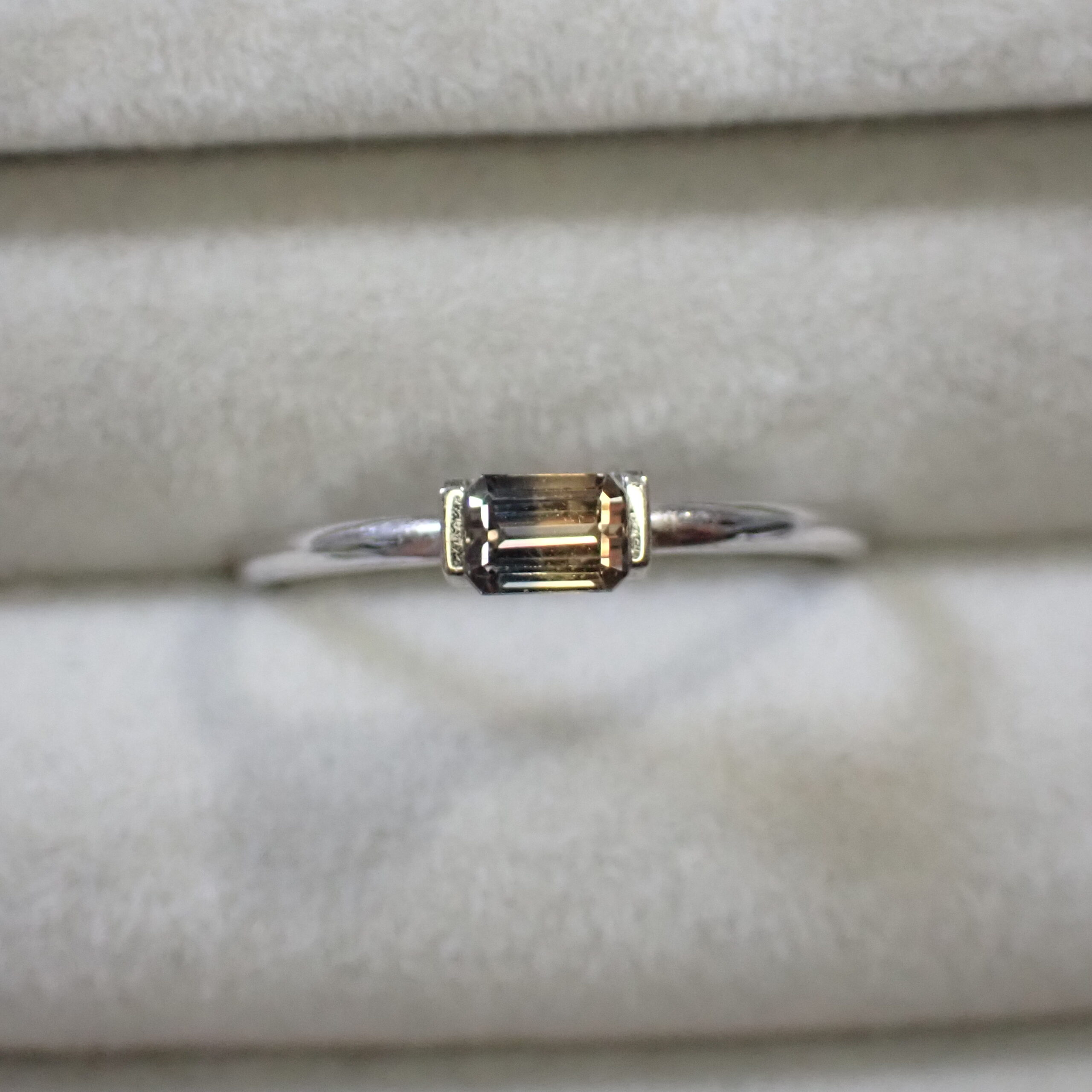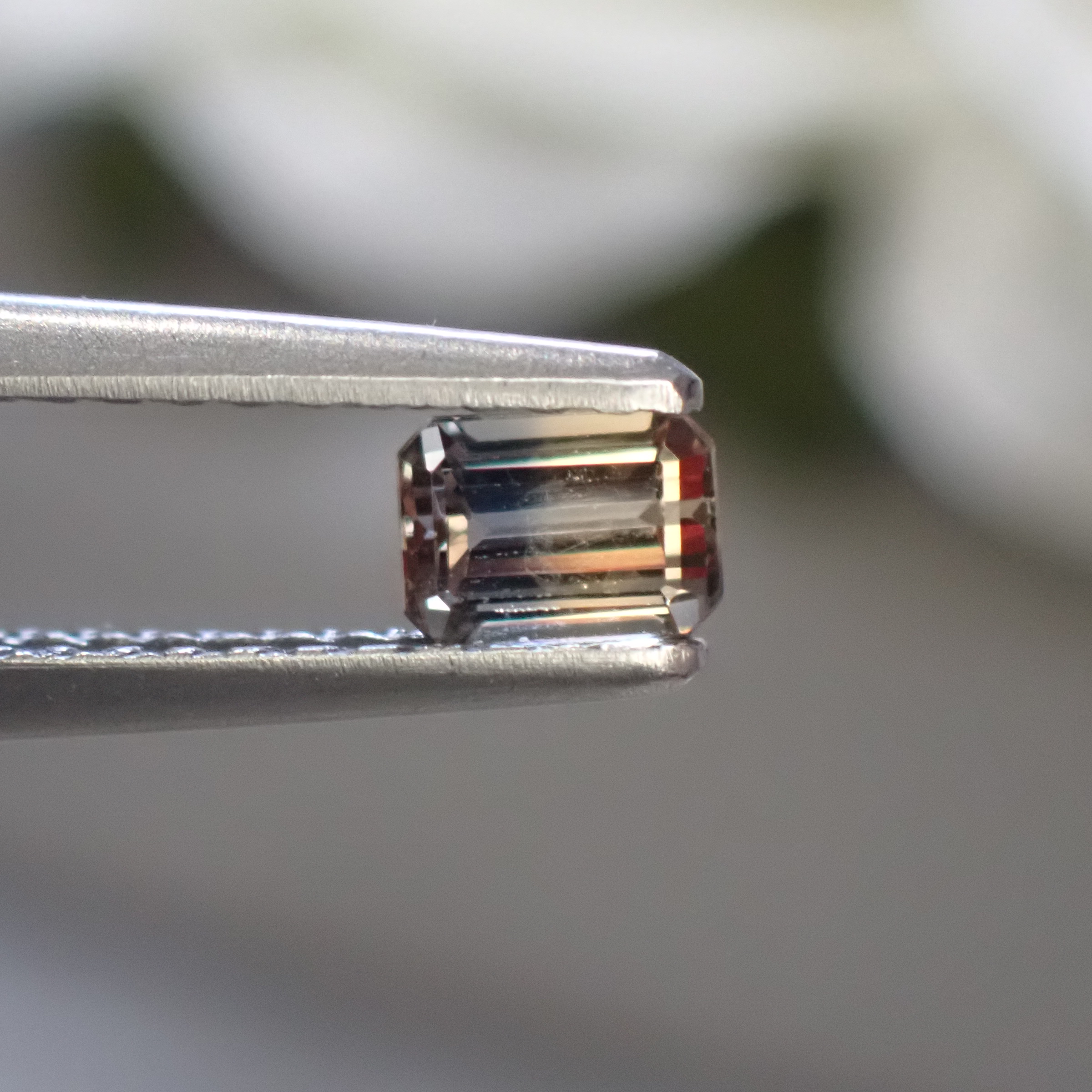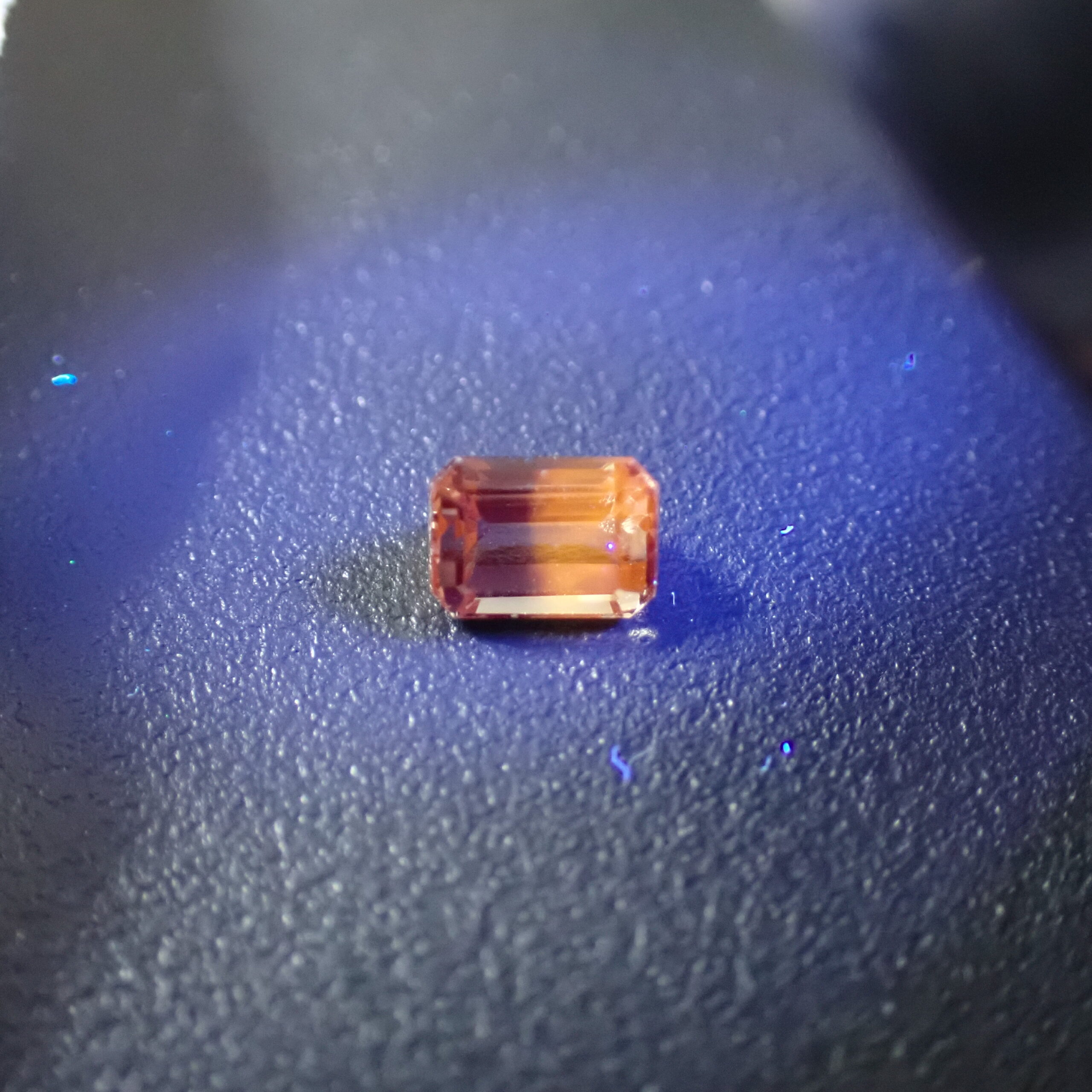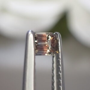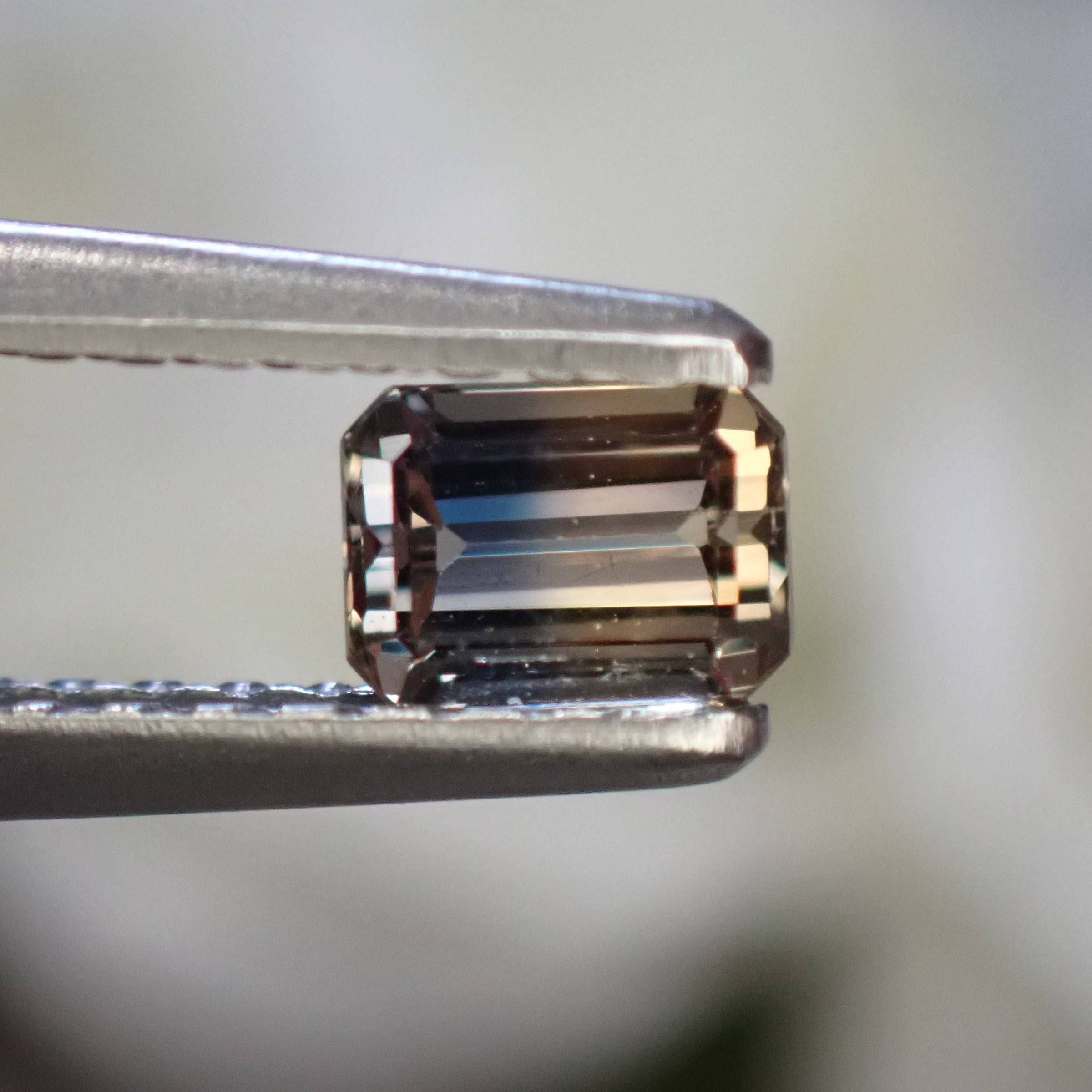 シックなブラウニッシュオレンジイエローとブルーの組み合わせが美しいバイカラーサファイア。