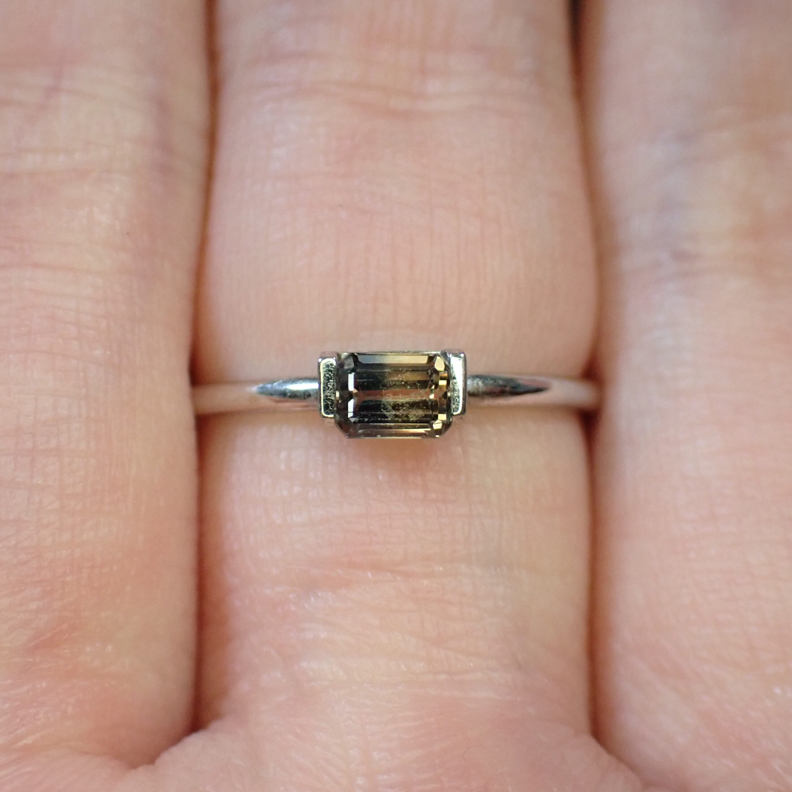 指に乗せても暗くならず、光を受けるたびに強い輝きが際立ちます。