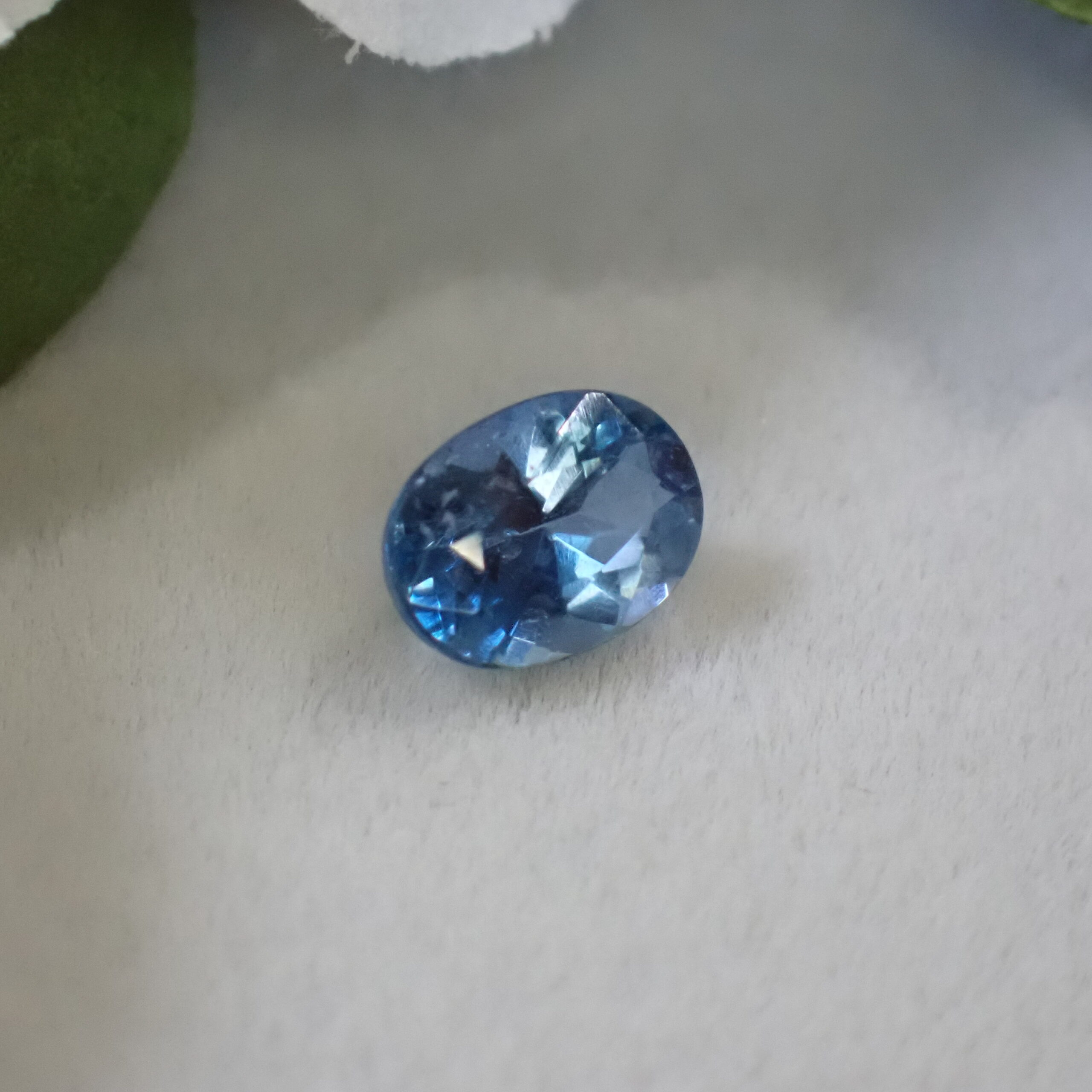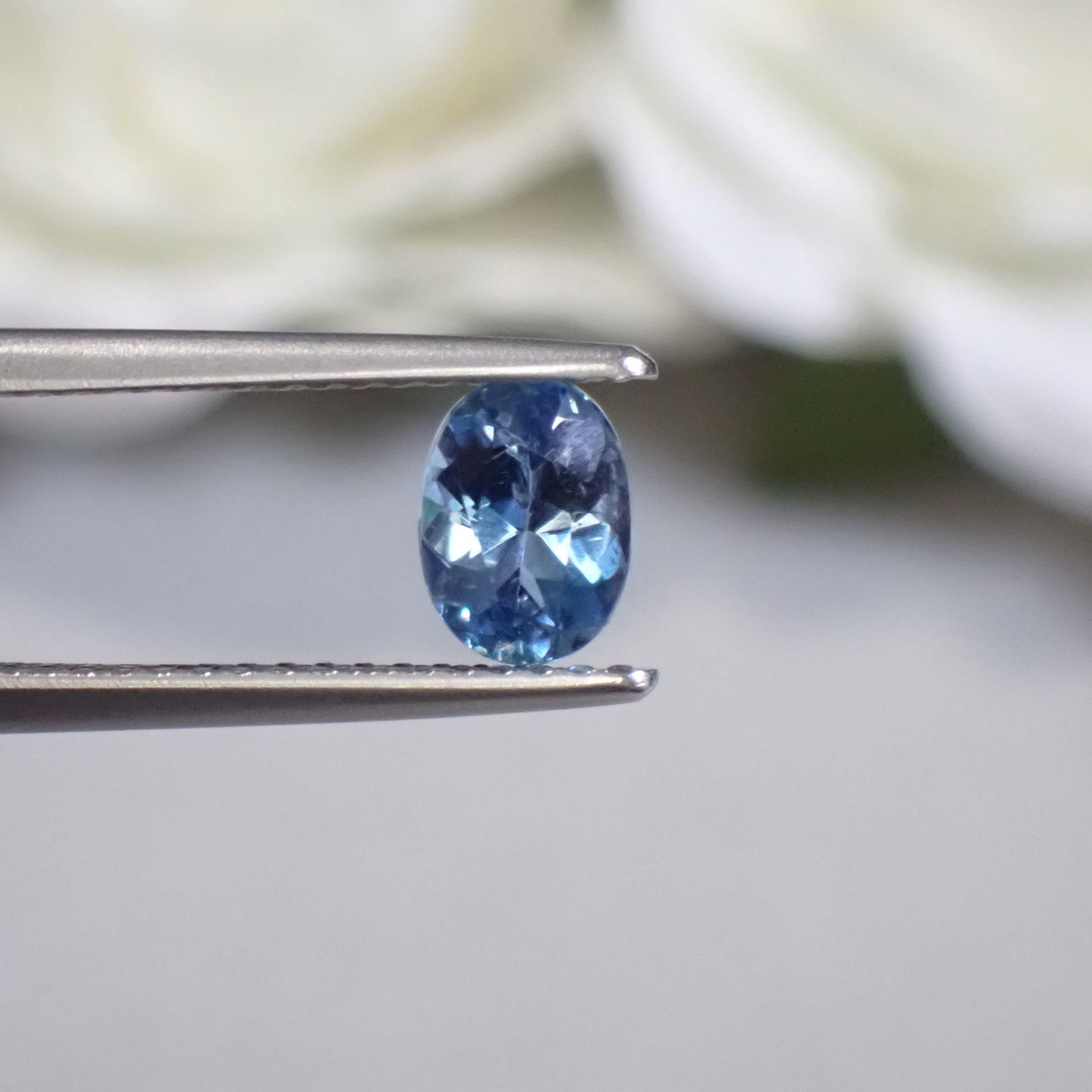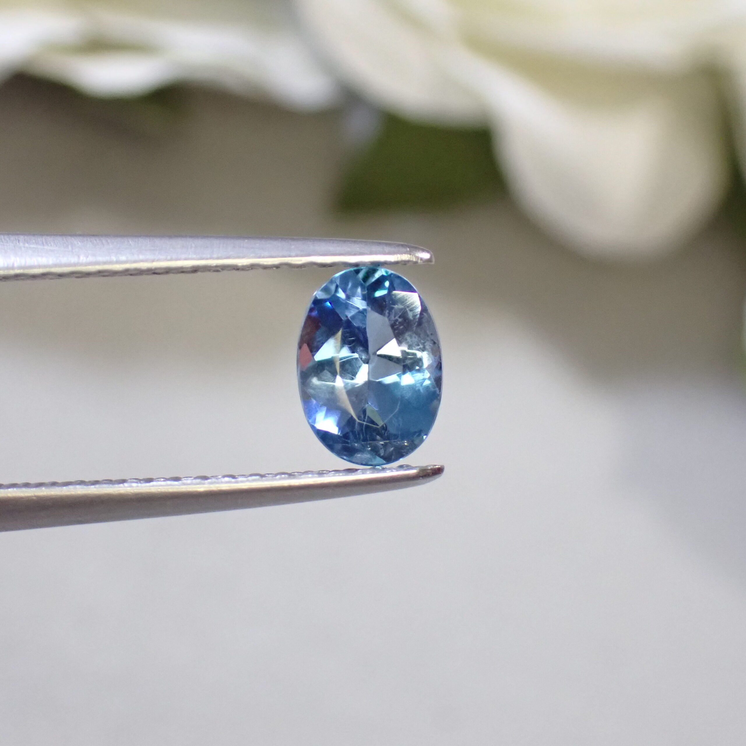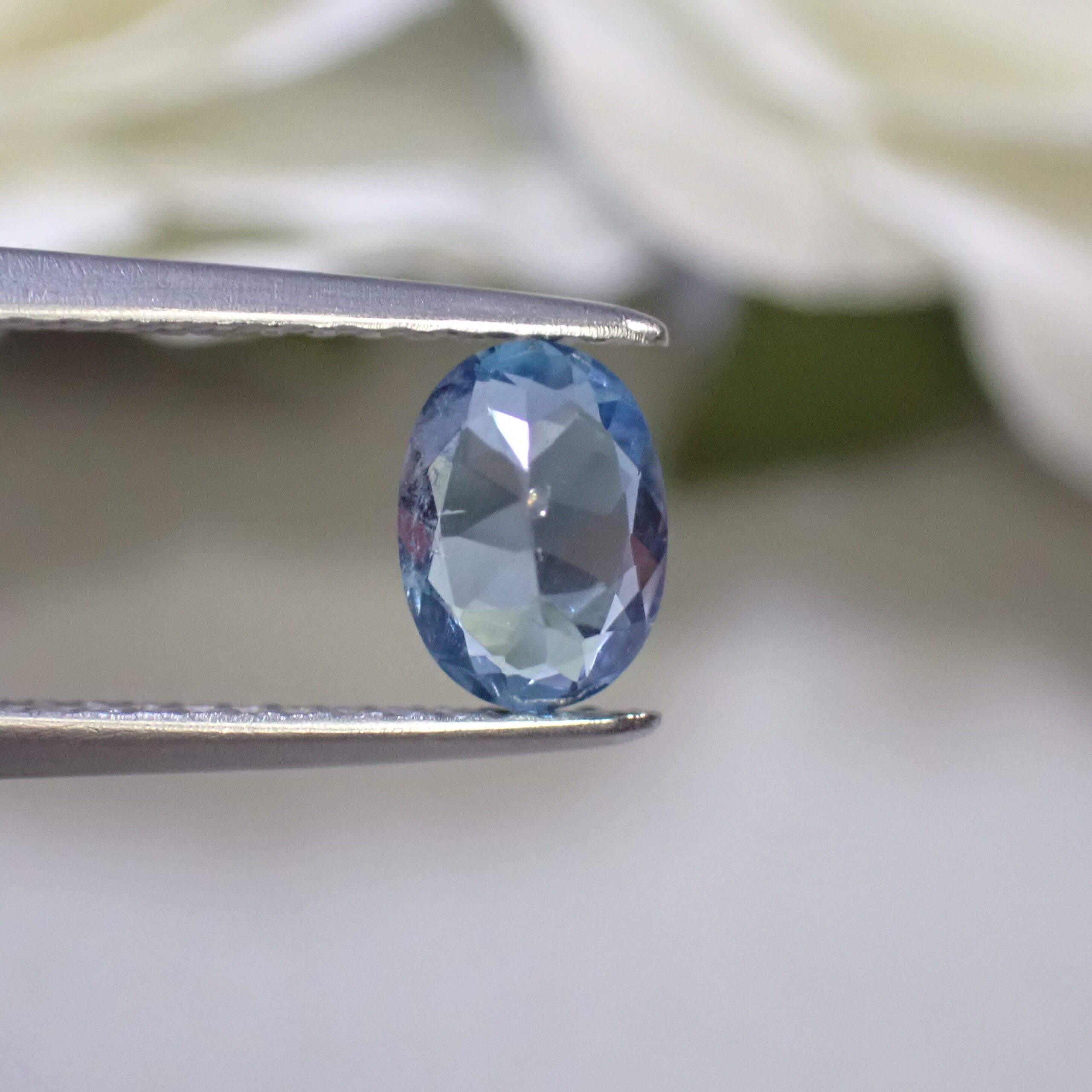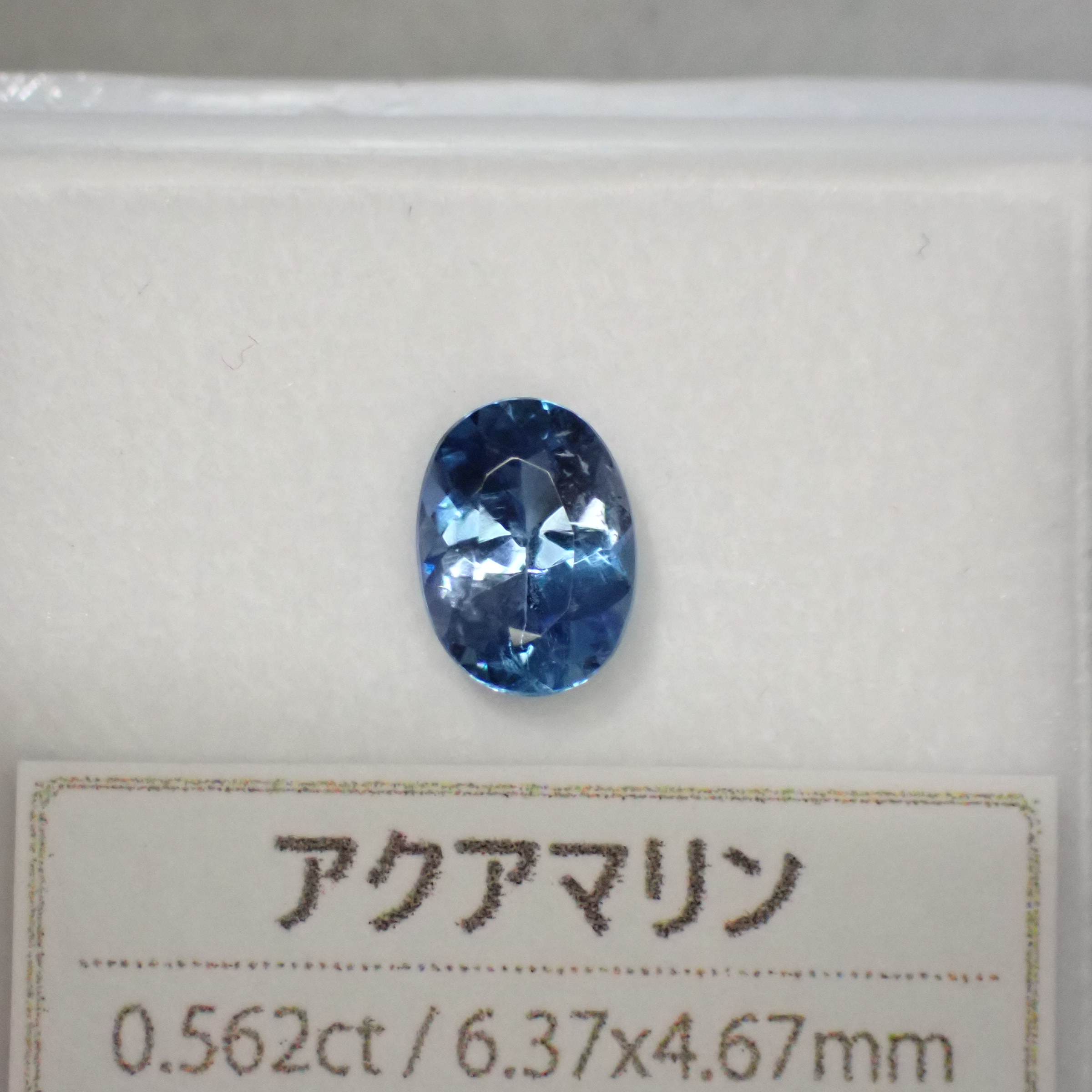 10倍ルーペで見ると海の中の気泡のようなインクルージョンや裏面にちいさなキャビティ、白い線状のインクルージョンが確認できますが、肉眼ではほとんど確認困難なレベル。その澄んだ透明度はジュエリー加工にも自信を持っておすすめできるクオリティです。