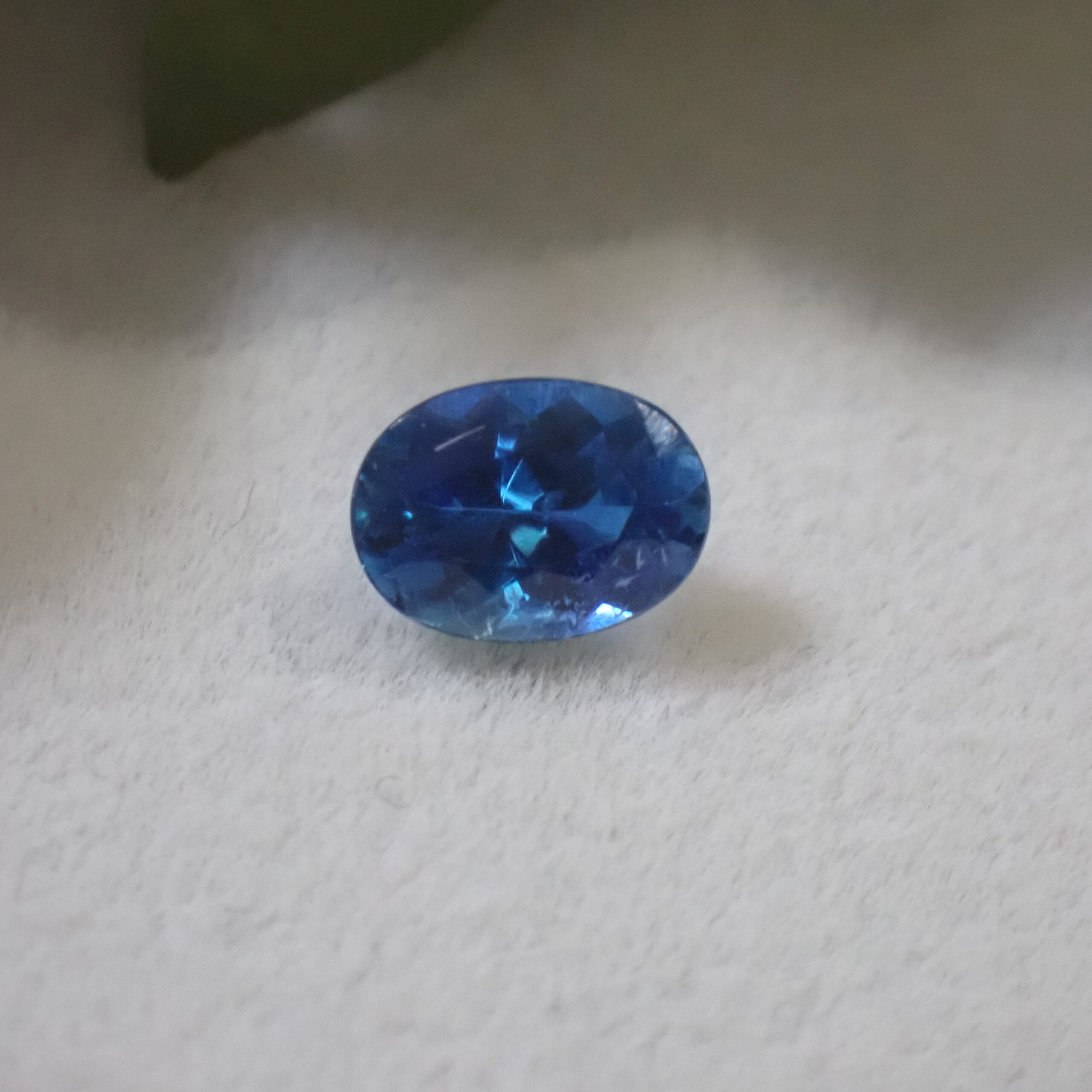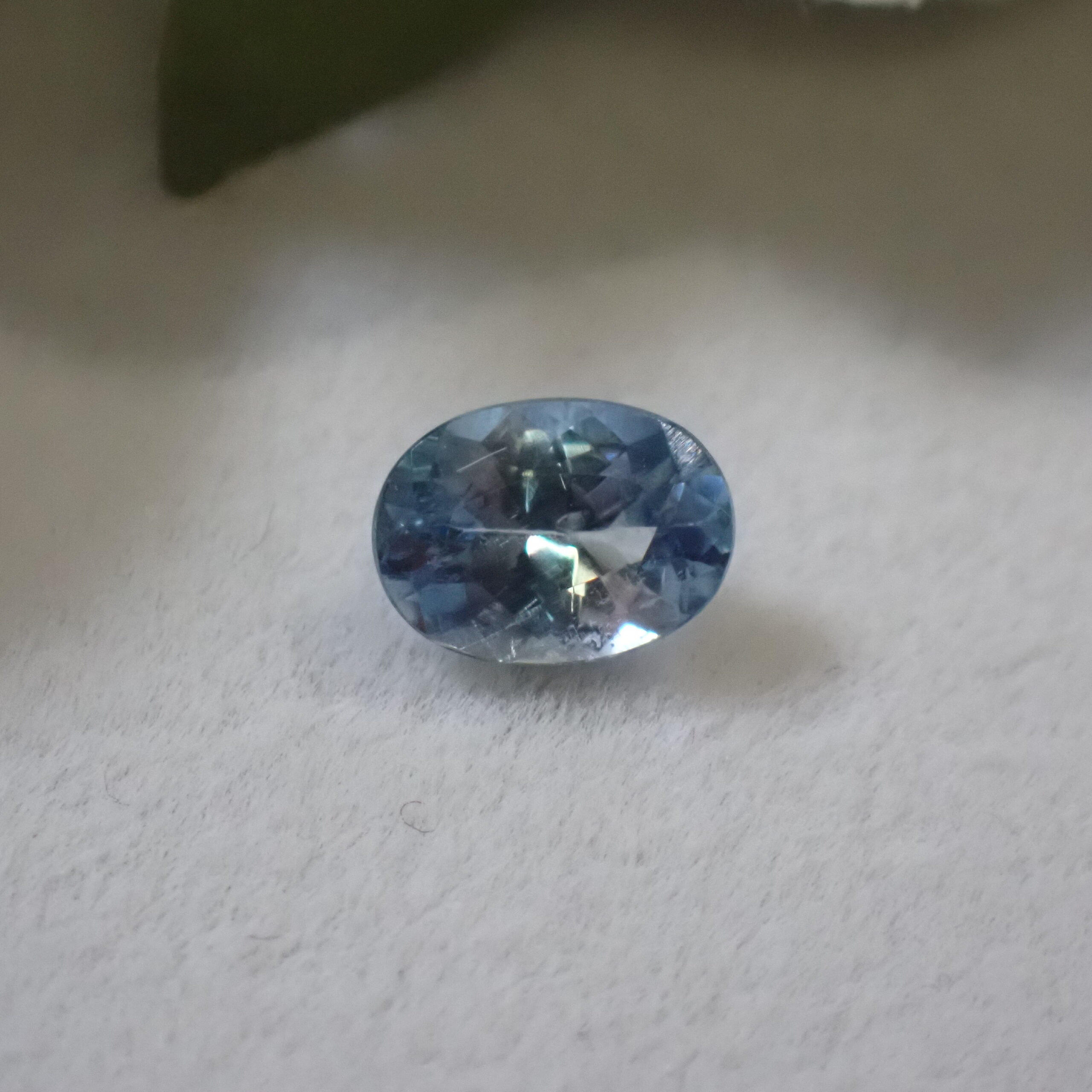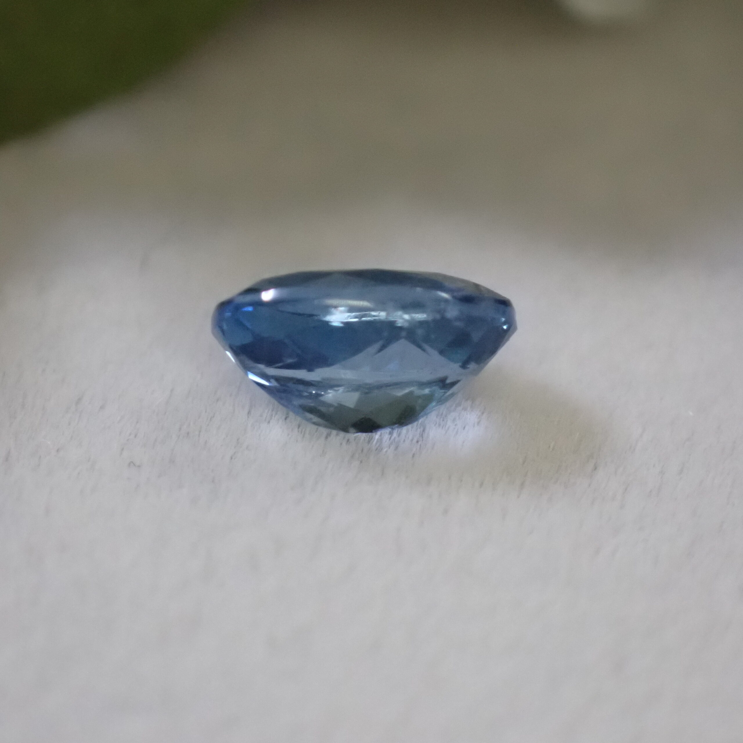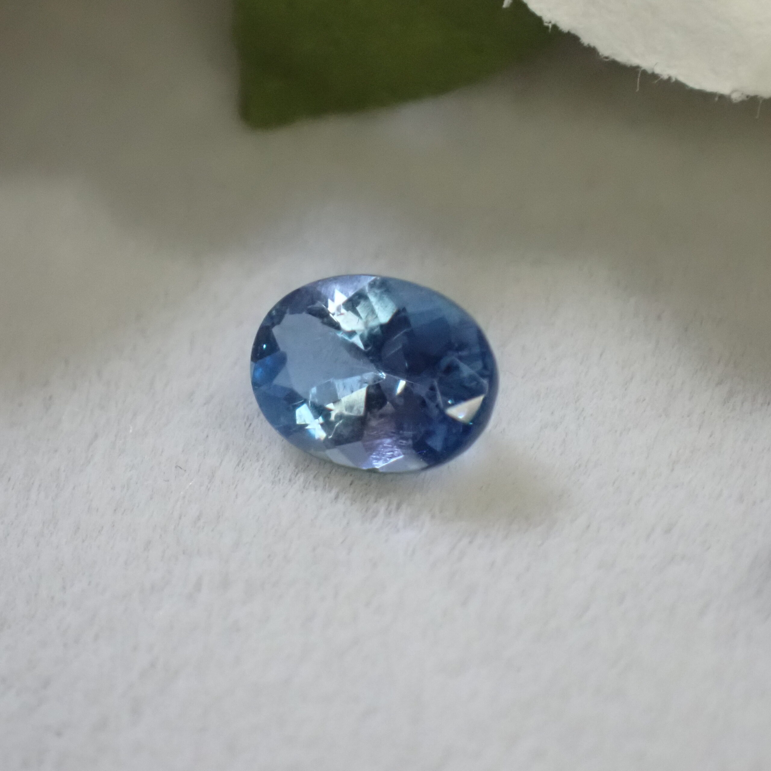 10倍ルーペで見ると海の中の気泡のようなインクルージョンや裏面にちいさなキャビティ、白い線状のインクルージョンが確認できますが、肉眼ではほとんど確認困難なレベル。その澄んだ透明度はジュエリー加工にも自信を持っておすすめできるクオリティです。
