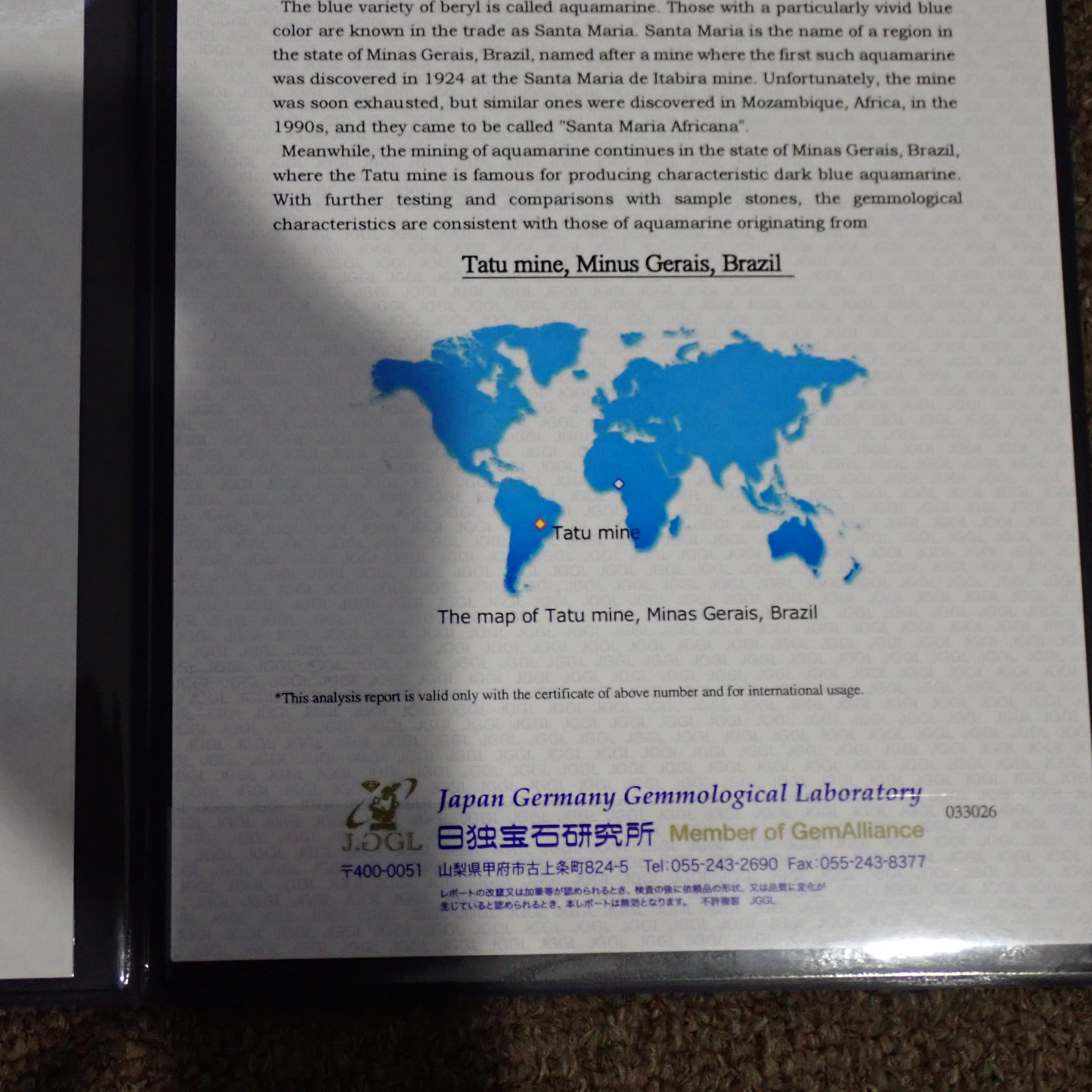 ※Tatu産の産地同定鑑別書付き