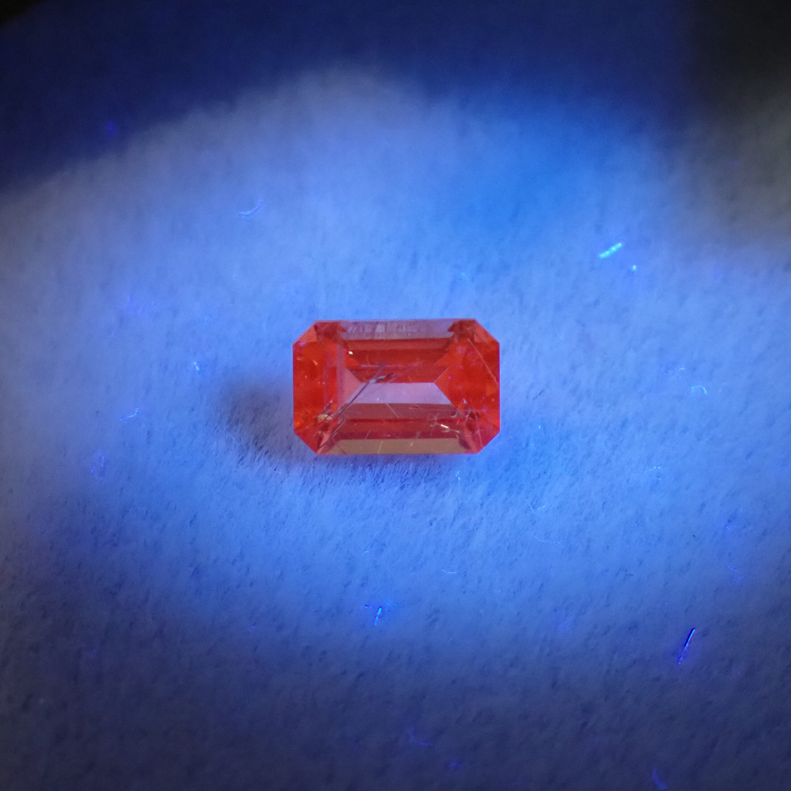 つむりUVライトを当てると、鮮やかなオレンジカラーへ強い蛍光反応を示し、まるで別の石のようにも見えます。