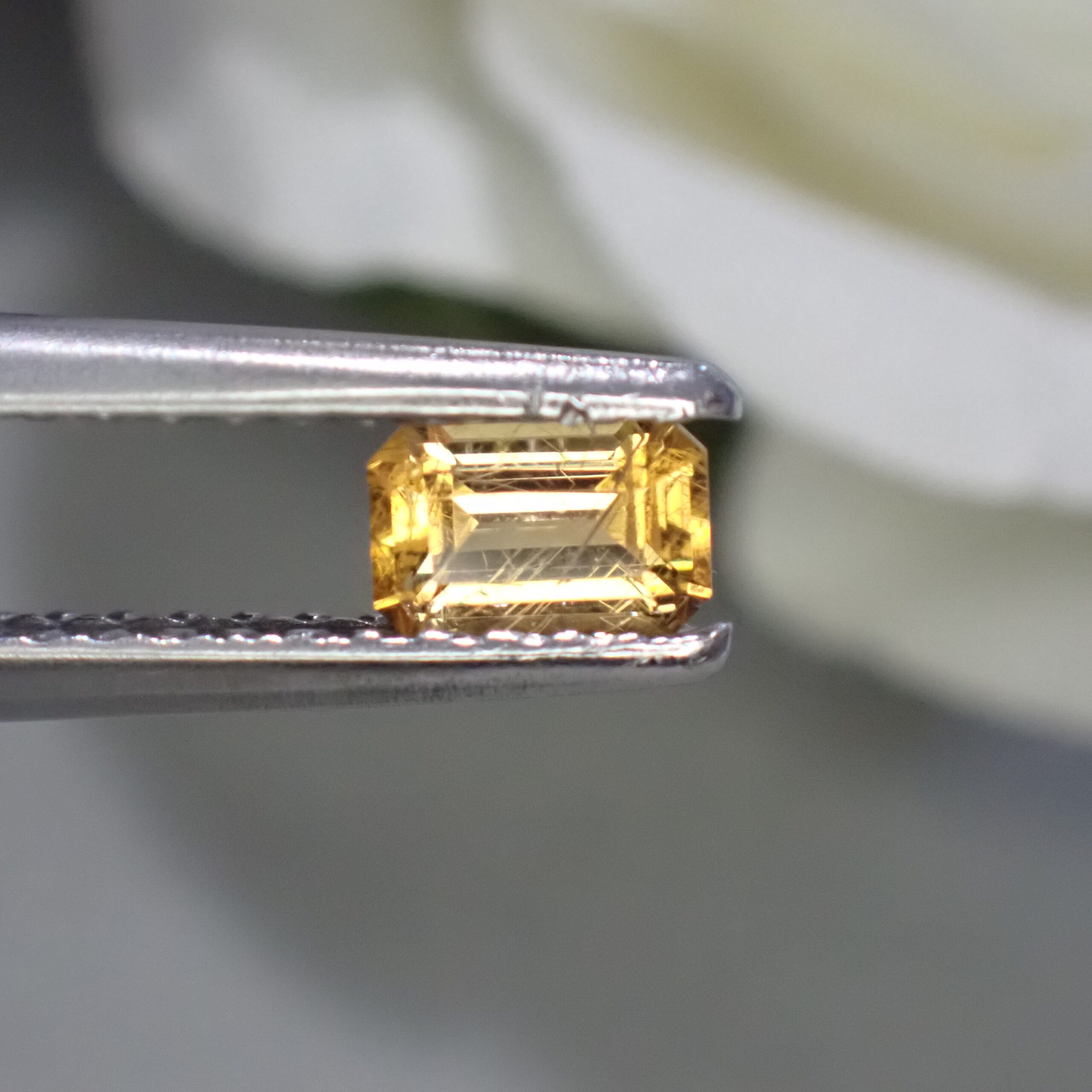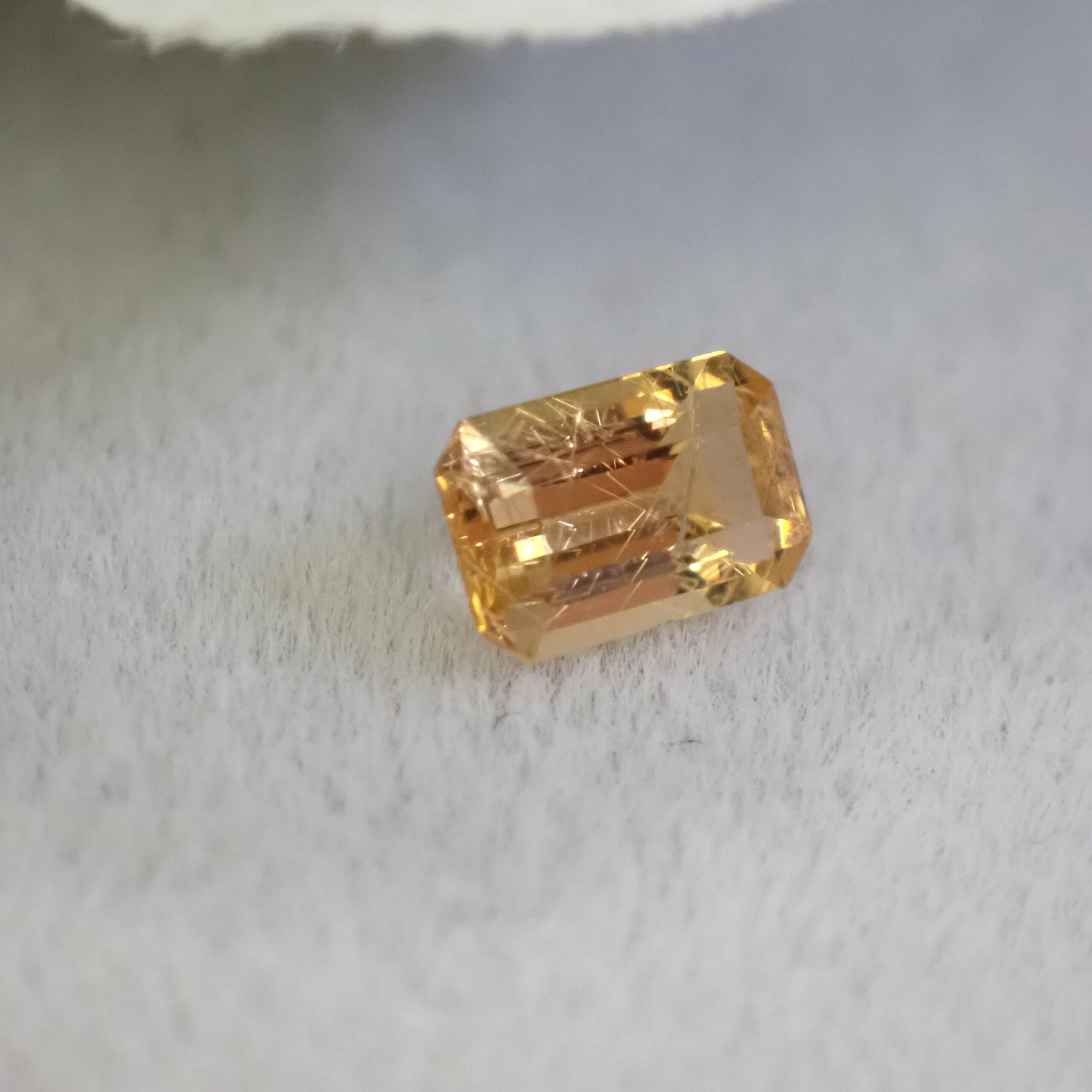 繊細な針状インクルージョンが僅かに宿っていますが、それを補って余りあるほどの力強い輝き(テリ)が魅力のルースです。