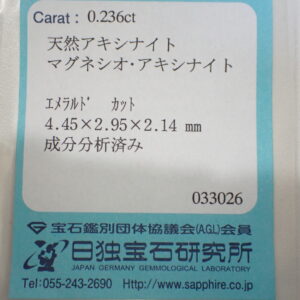 今回ご紹介するのは、日独宝石研究所の成分分析付き「マグネシオ・アキシナイト」です。