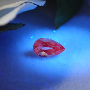 つむりUVライトを当てると、鮮やかなピンクカラーへ強い蛍光反応を示し、まるで別の石のようにも見えます。
