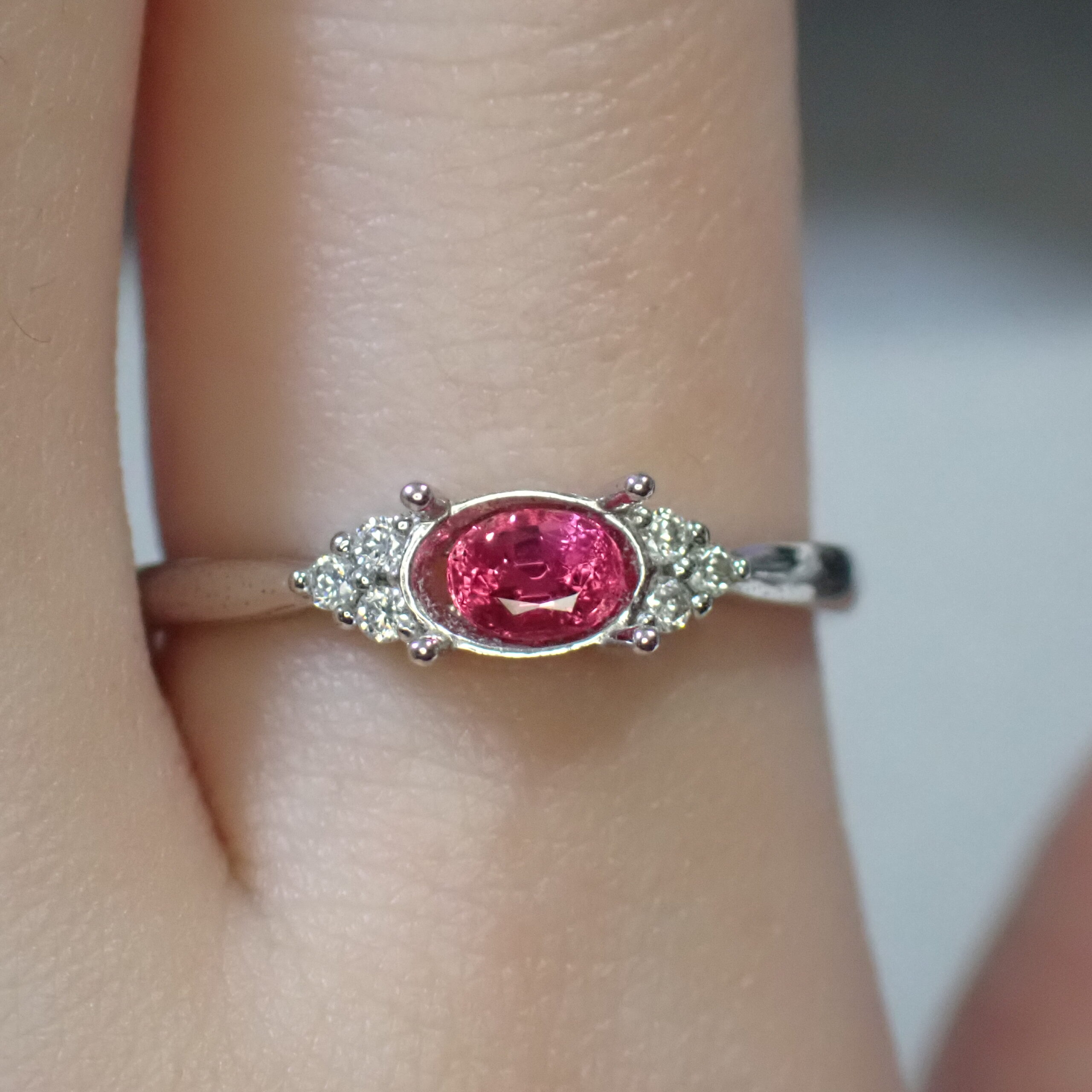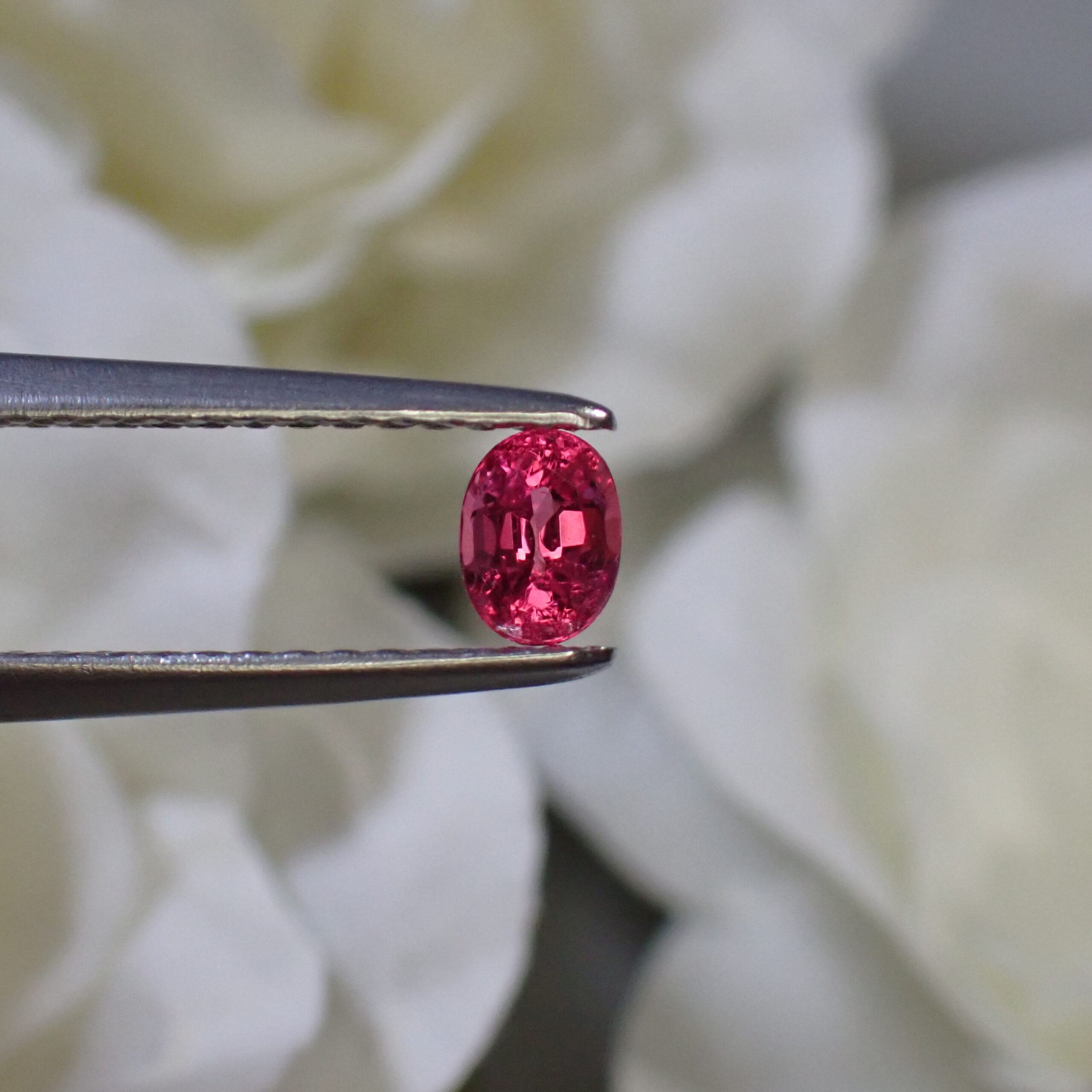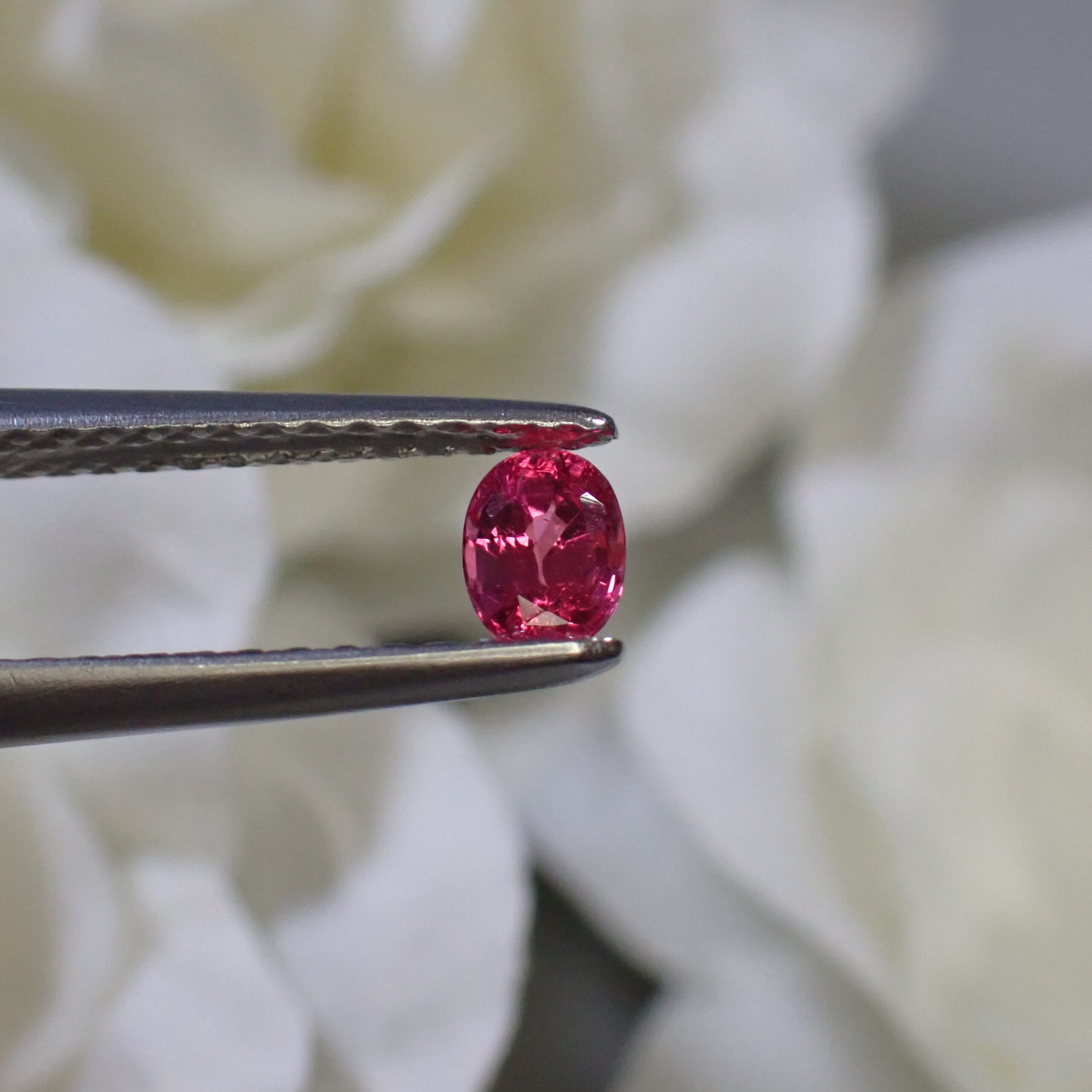 探してみると、ネオンカラーのパープルピンクスピネルは意外と少なく、こうした澄んだトーンのものは希少です。