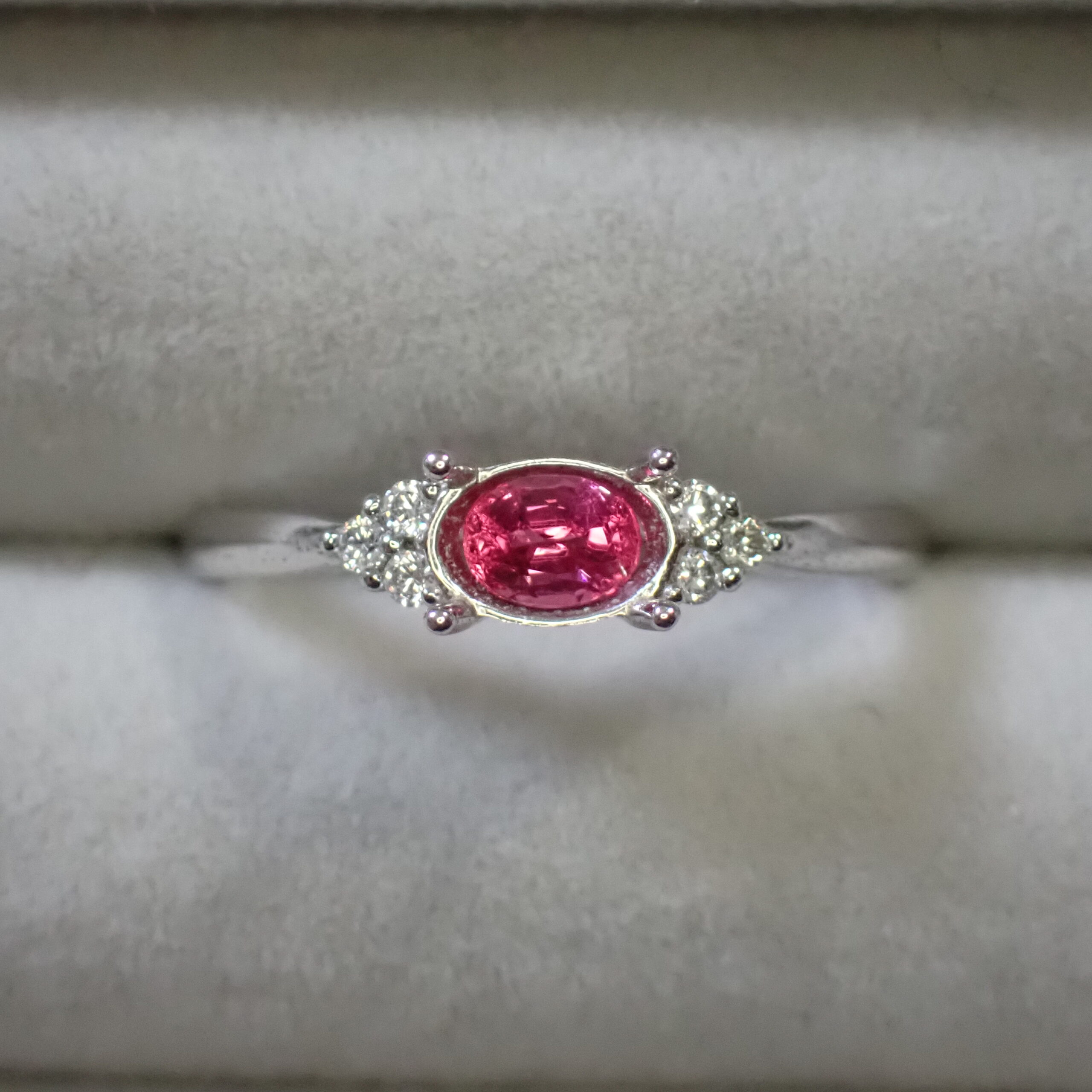盤面が広く光を受けるたびに強い輝きが楽しめる華やかなピンクスピネル。