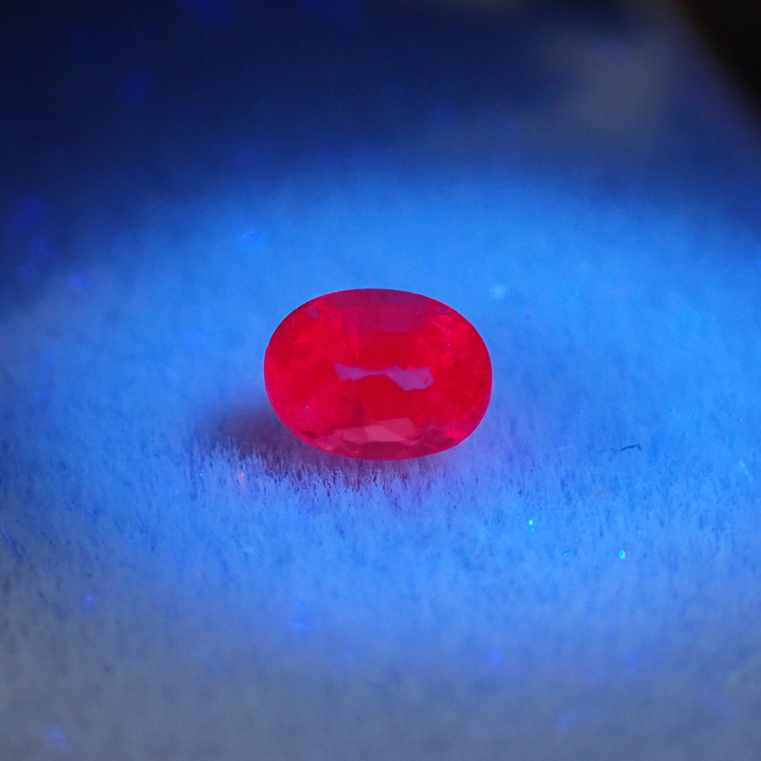 UVライトを当てると、まるで光が宿ったように強い蛍光を放つのもこのルースの魅力。