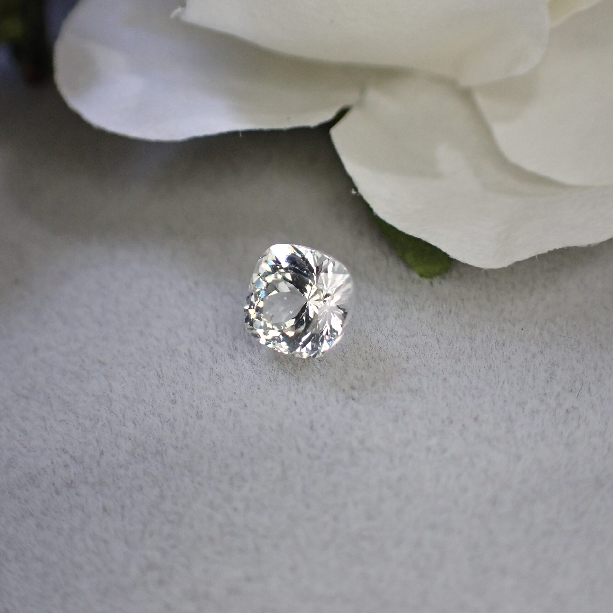 まばゆいほどの透明感で、力強くシャープな輝きを放つこの一石は、グロッシュラーガーネットの中でも極めて希少な「リューコガーネット(カラーレスグロッシュラーガーネット)」。