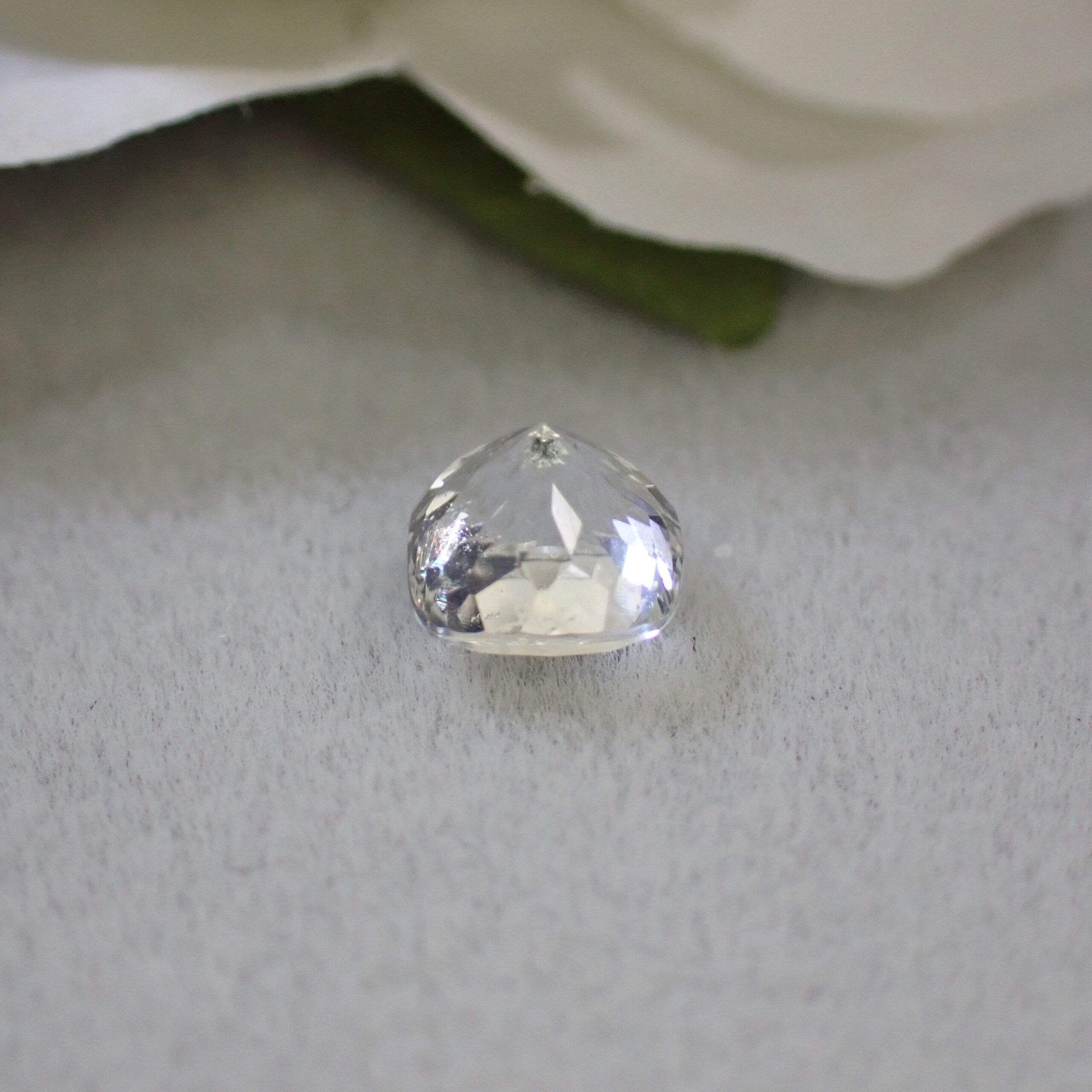 通常のリューコガーネットは内包物やキズが多いことで知られていますが、こちらはかなりクリーンなルースです。10倍ルーペで覗くと、気泡のようなインクルージョンがうっすら見えますが、輝きが強く、肉眼では確認困難です。