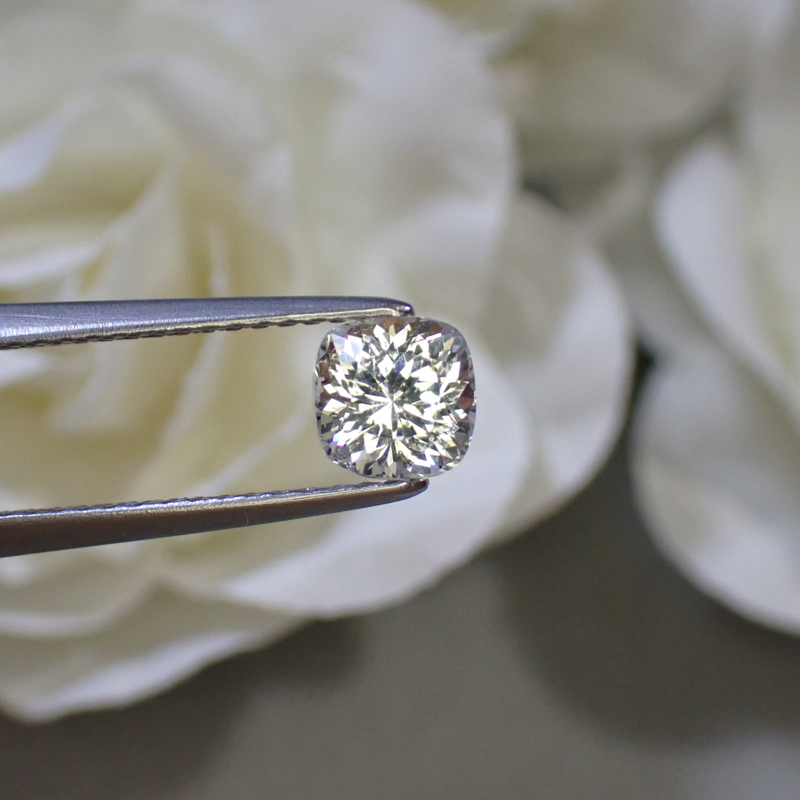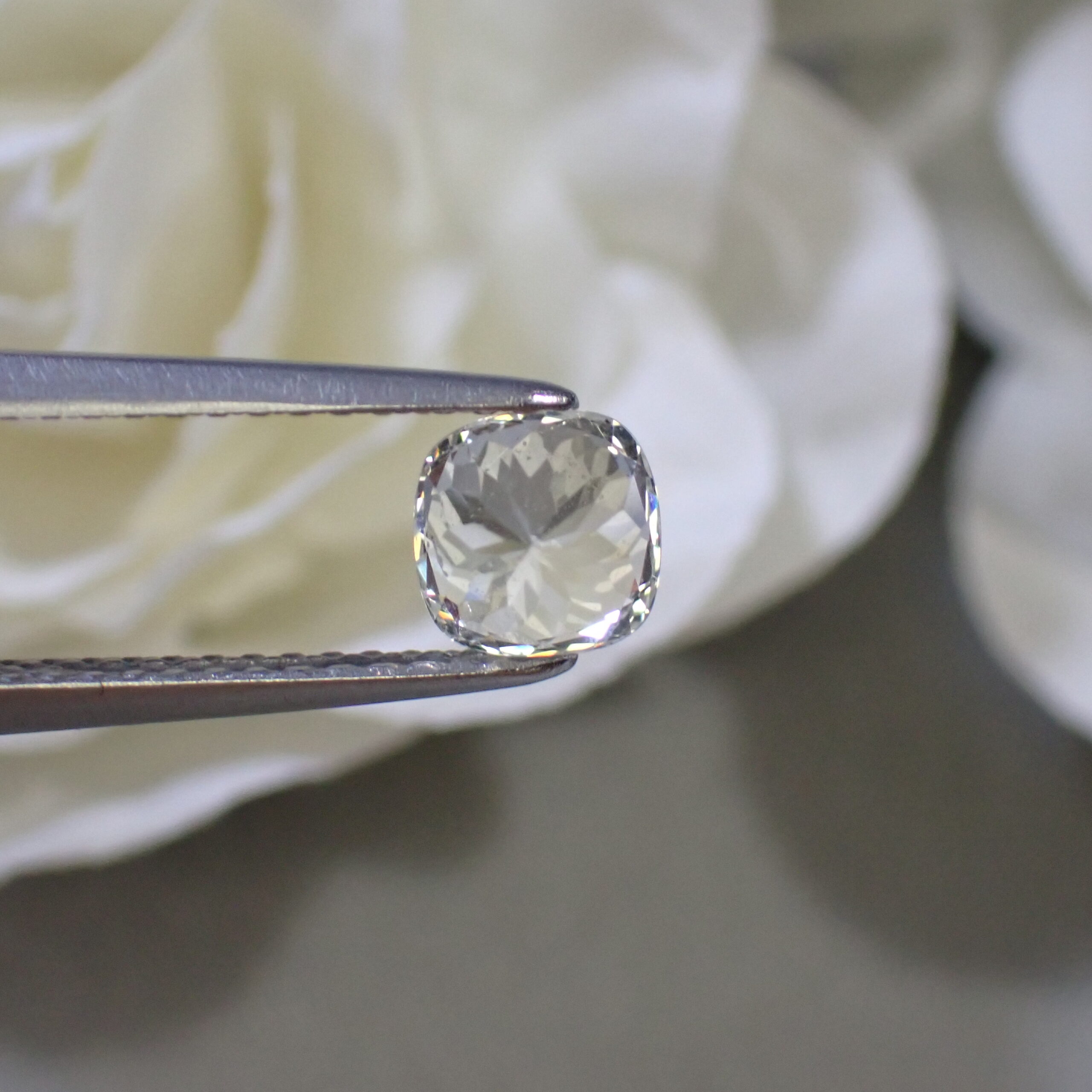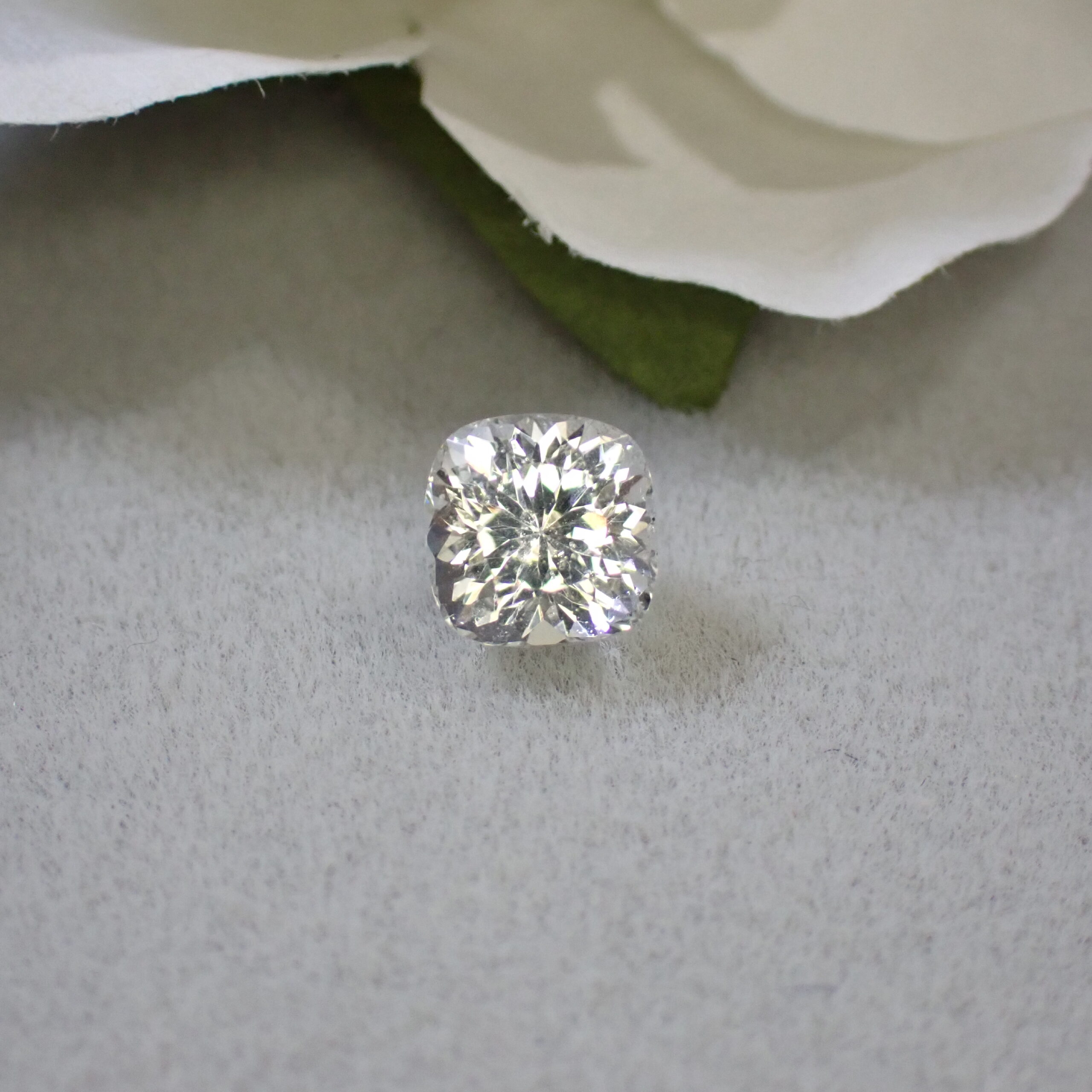 カットはバランスの良いクッションカット。縦向き・横向き、どちらでもジュエリーデザインに応じて自由にお使いいただけます。