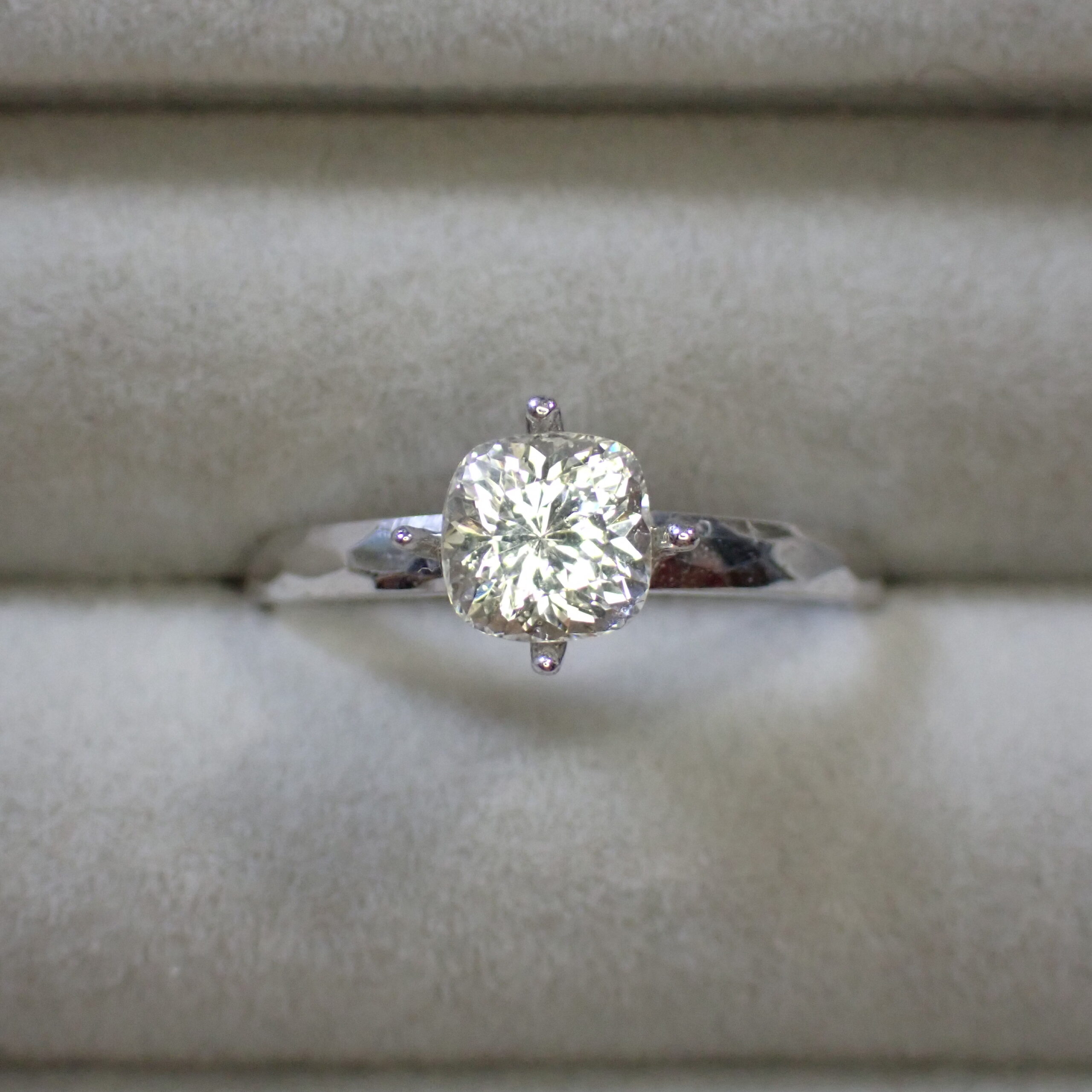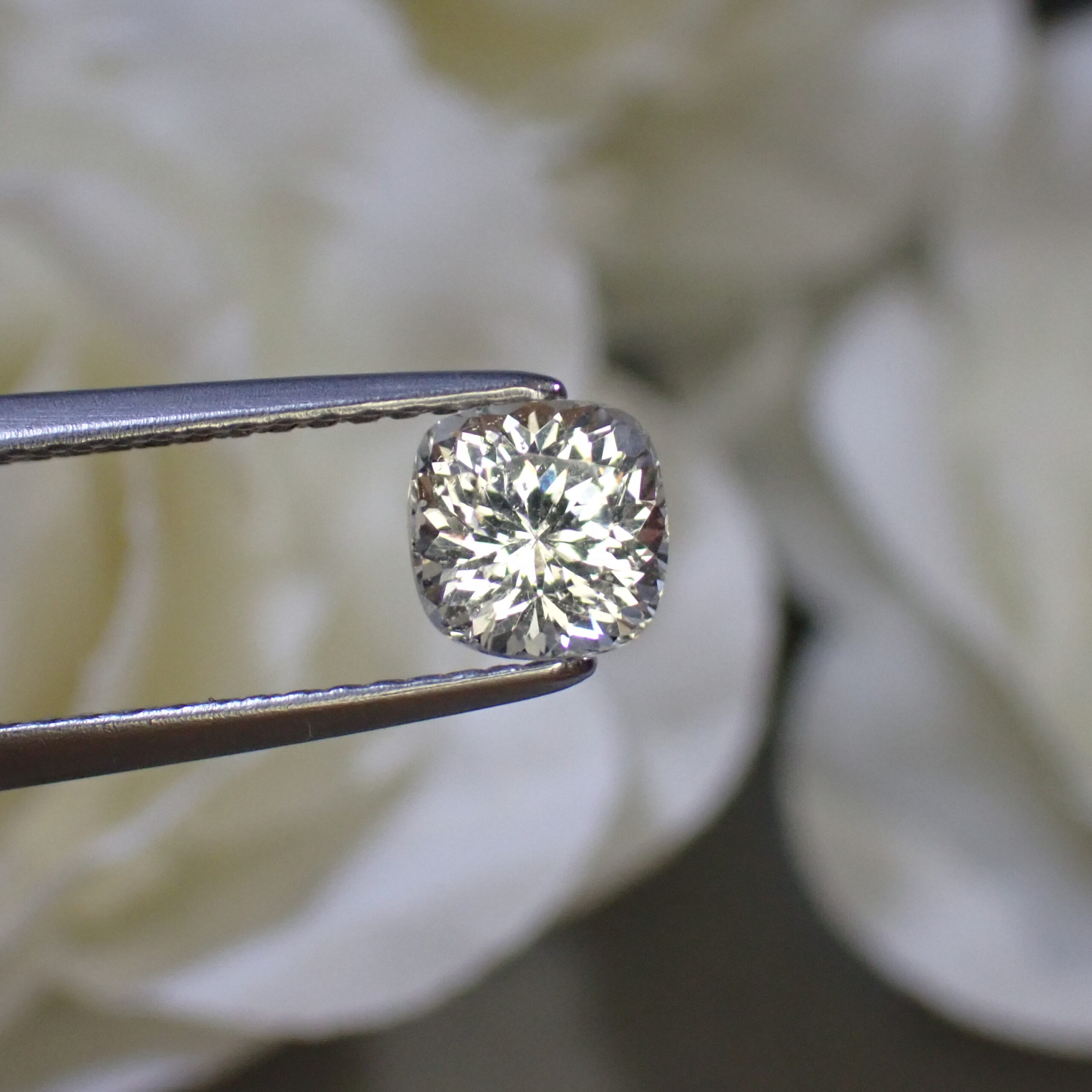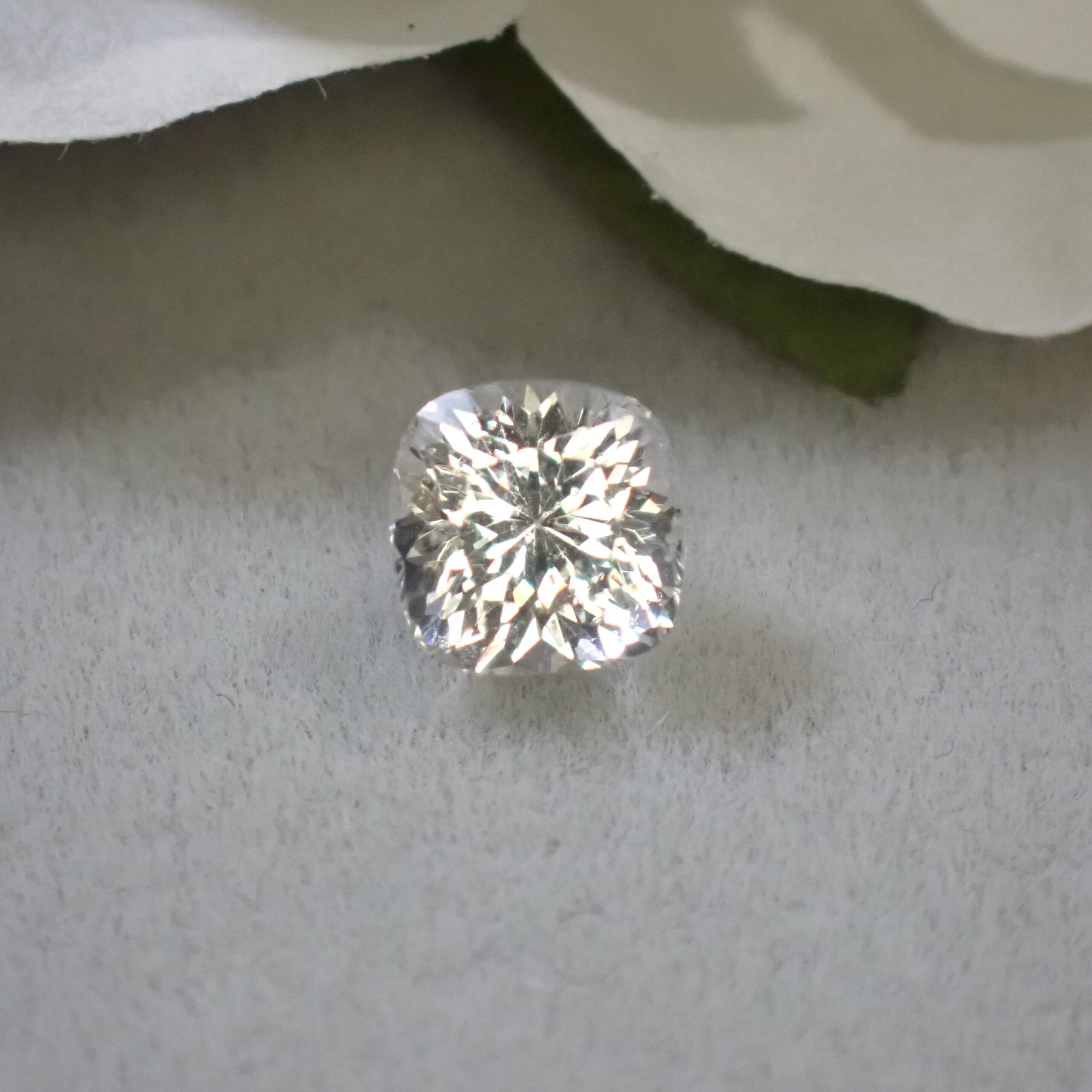 カットはバランスの良いクッションカット。縦向き・横向き、どちらでもジュエリーデザインに応じて自由にお使いいただけます。
