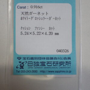 レアストーン☆強く輝くホワイトグロッシュラー(リューコ)ガーネット 0.916ct