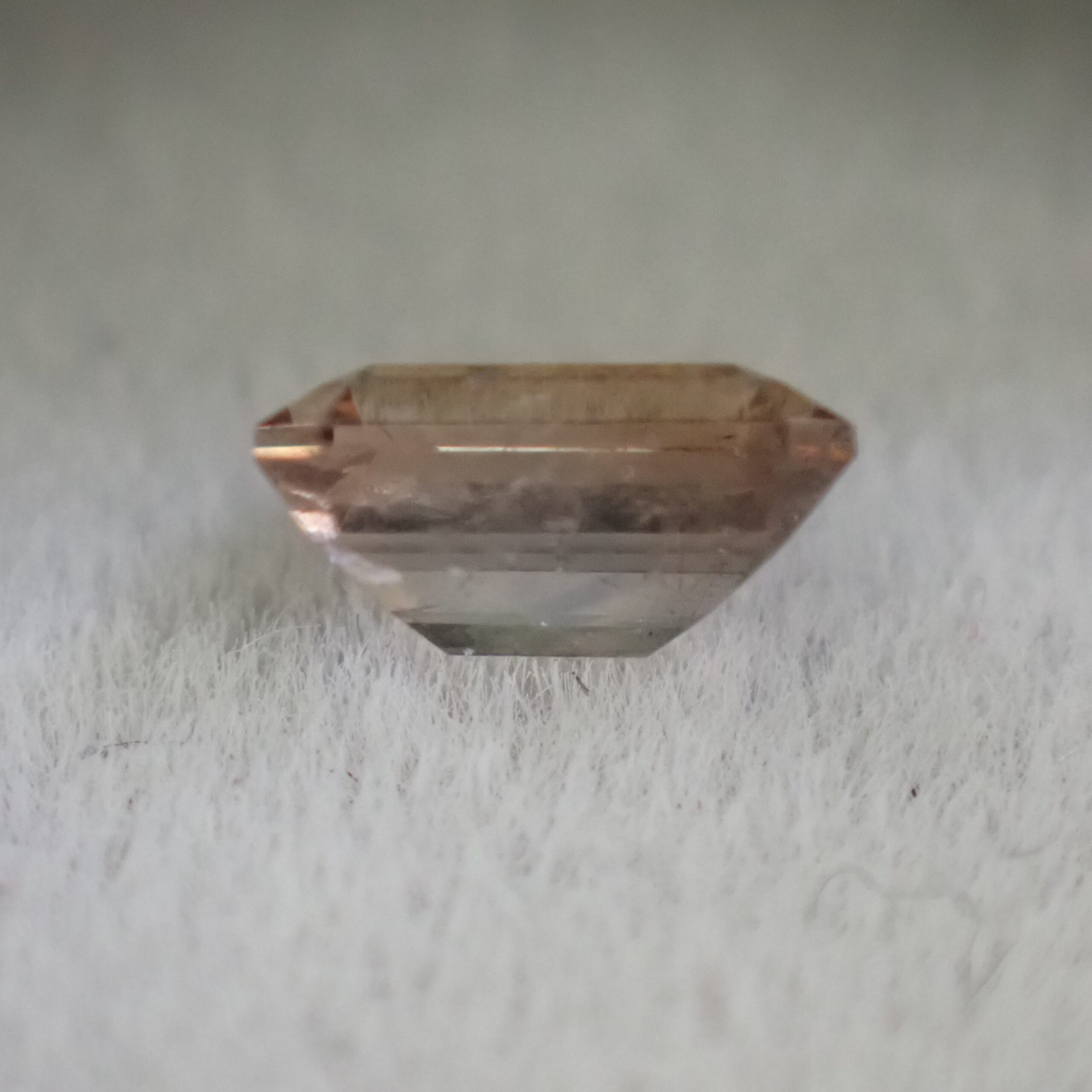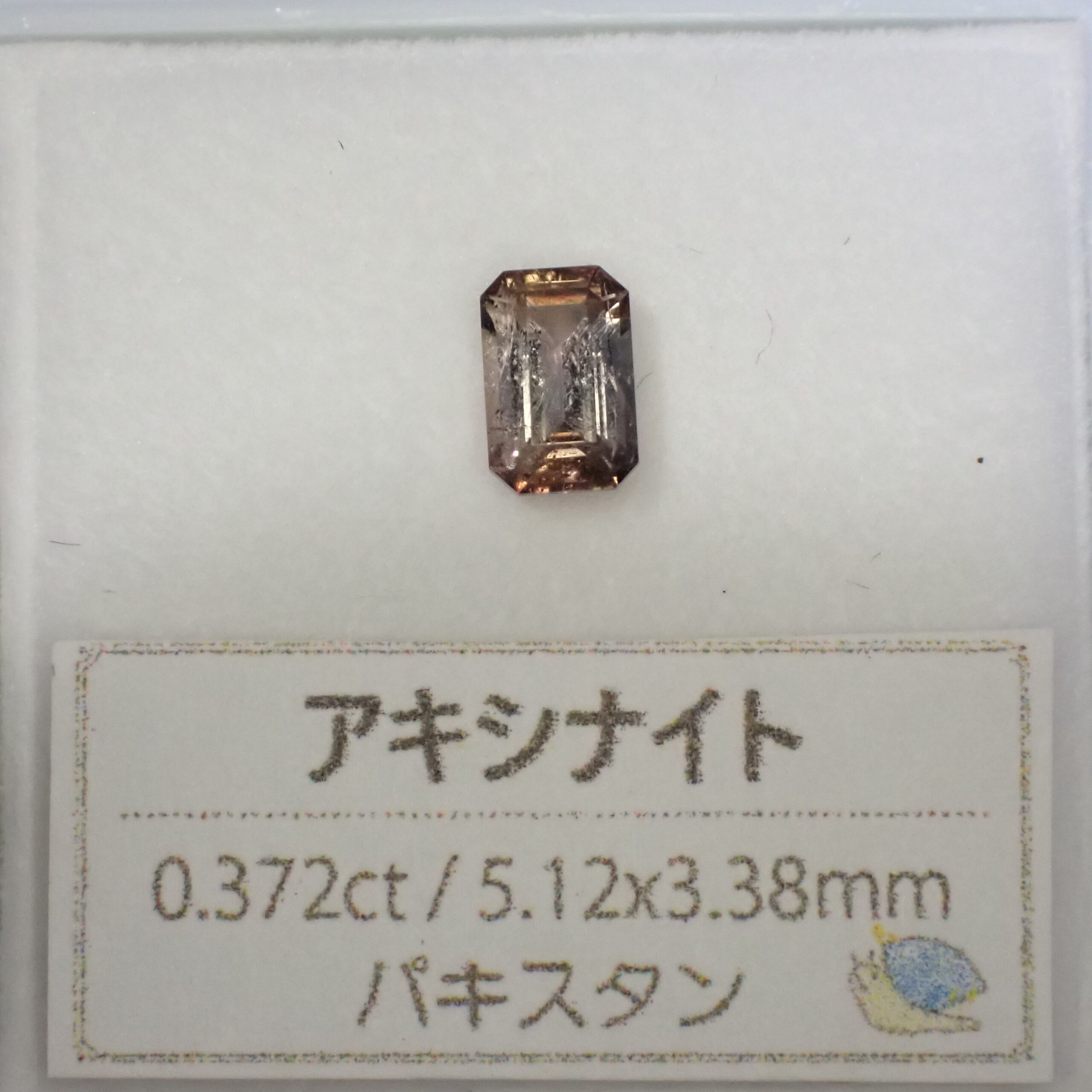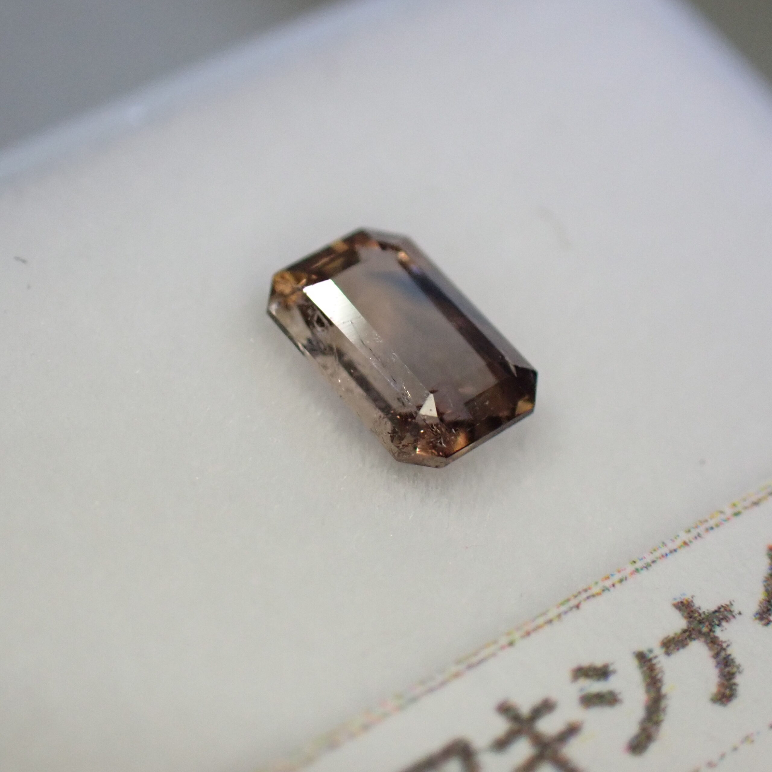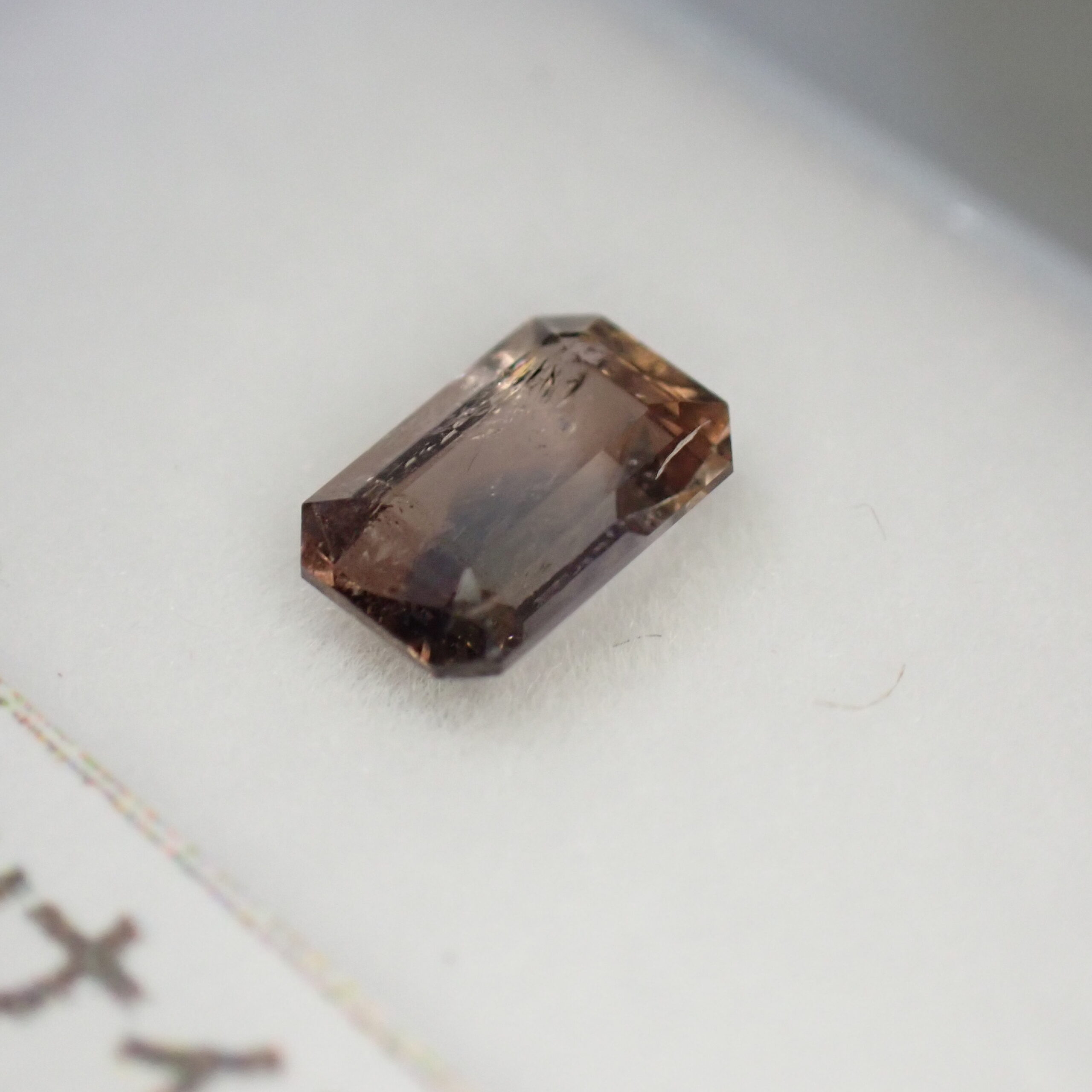 10倍ルーペでみると、アキシナイトらしい細かいインクルージョンと表のファセットカット面に小さな面キズが確認できます。