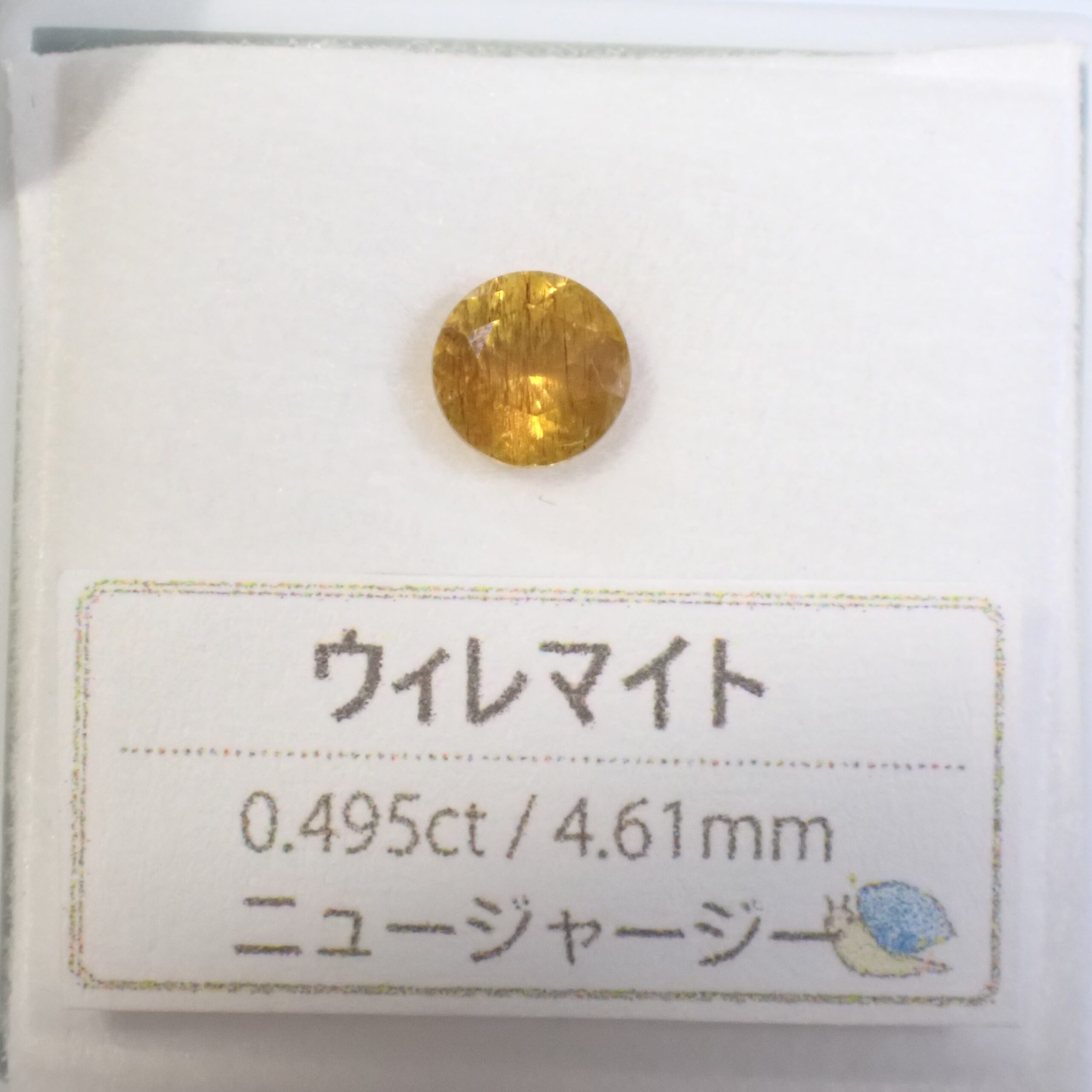 今回ご紹介するのは、アメリカ・ニュージャージー州産の希少なウィレマイト。オレンジを感じるイエローカラー。少しハチミツにも似た色味です。